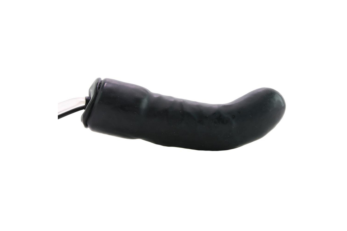 Чёрный изогнутый фаллос с вибрацией и расширением — 16 см
