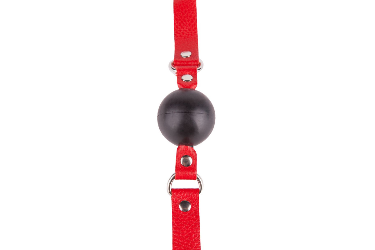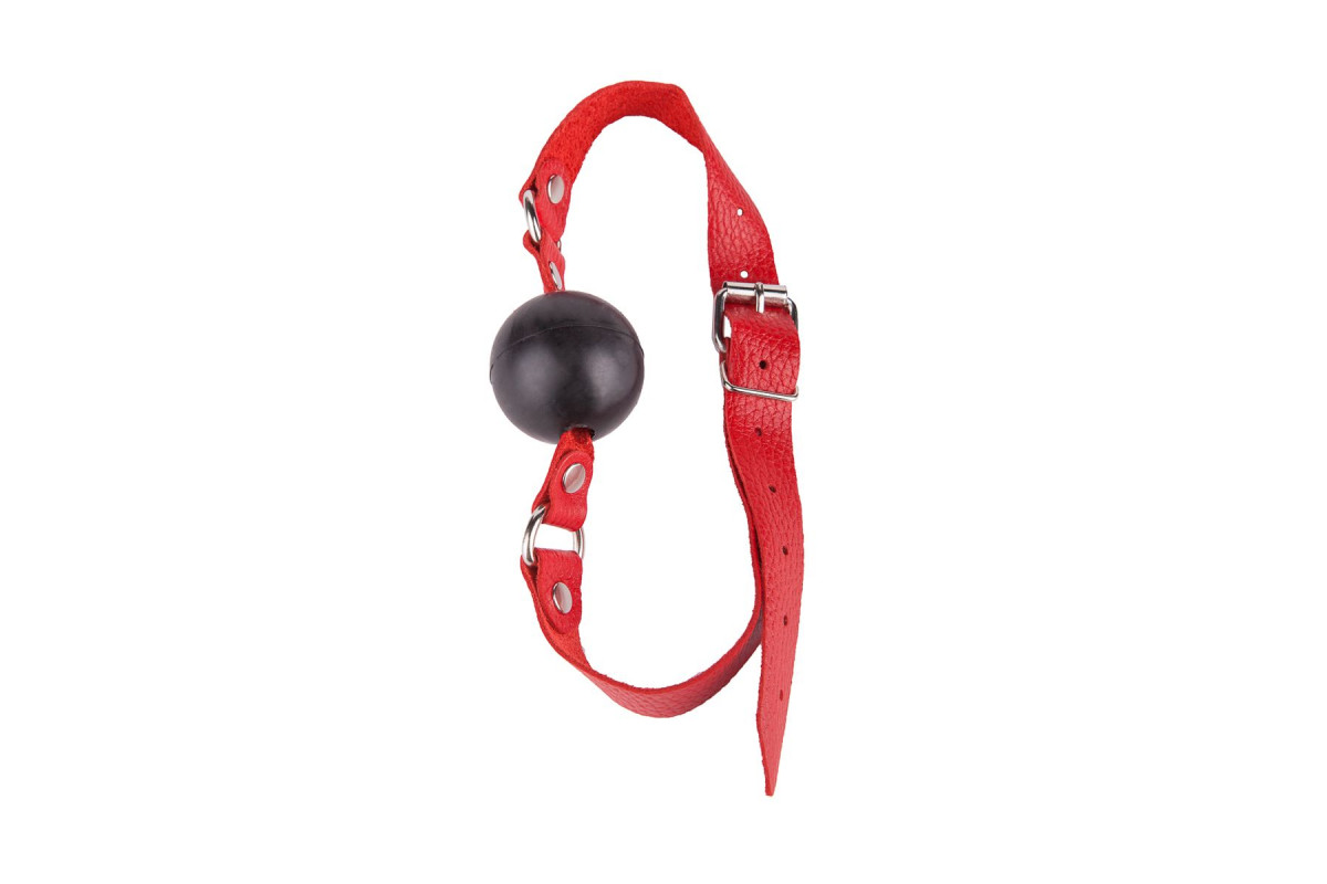 Чёрный кляп-шар с красным ремешком — добавьте остроты вашим интимным играм