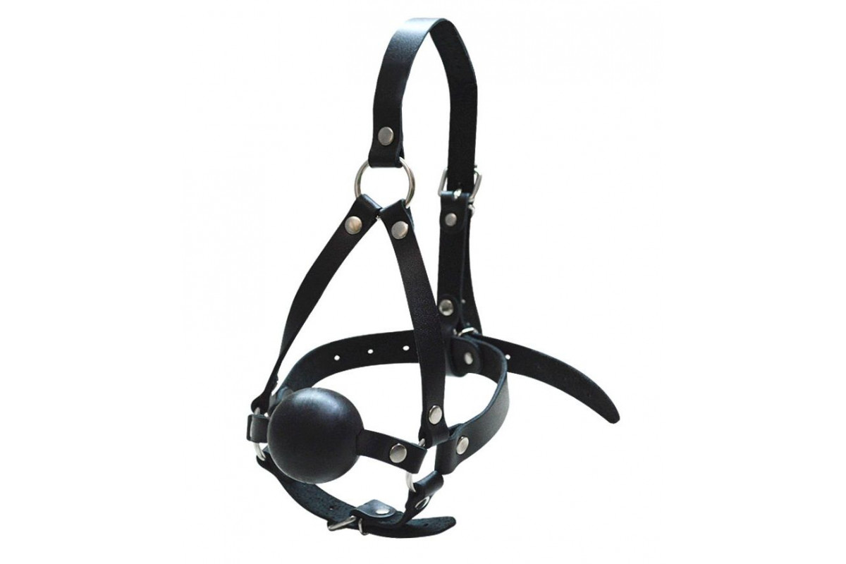 Черный кляп-шар со сбруей на голову из кожи — интенсивное удовольствие и стильный дизайн