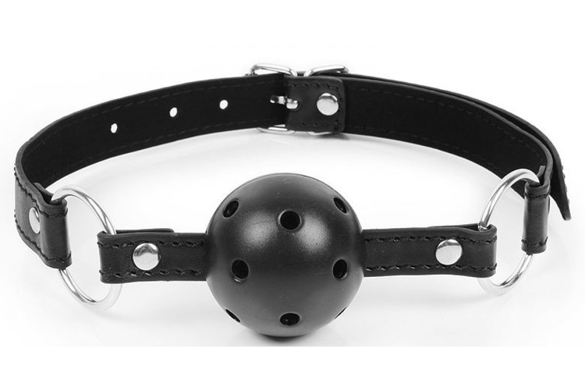 Черный кляп-шарик на регулируемом ремешке с кольцами — интенсивное удовольствие и безопасность