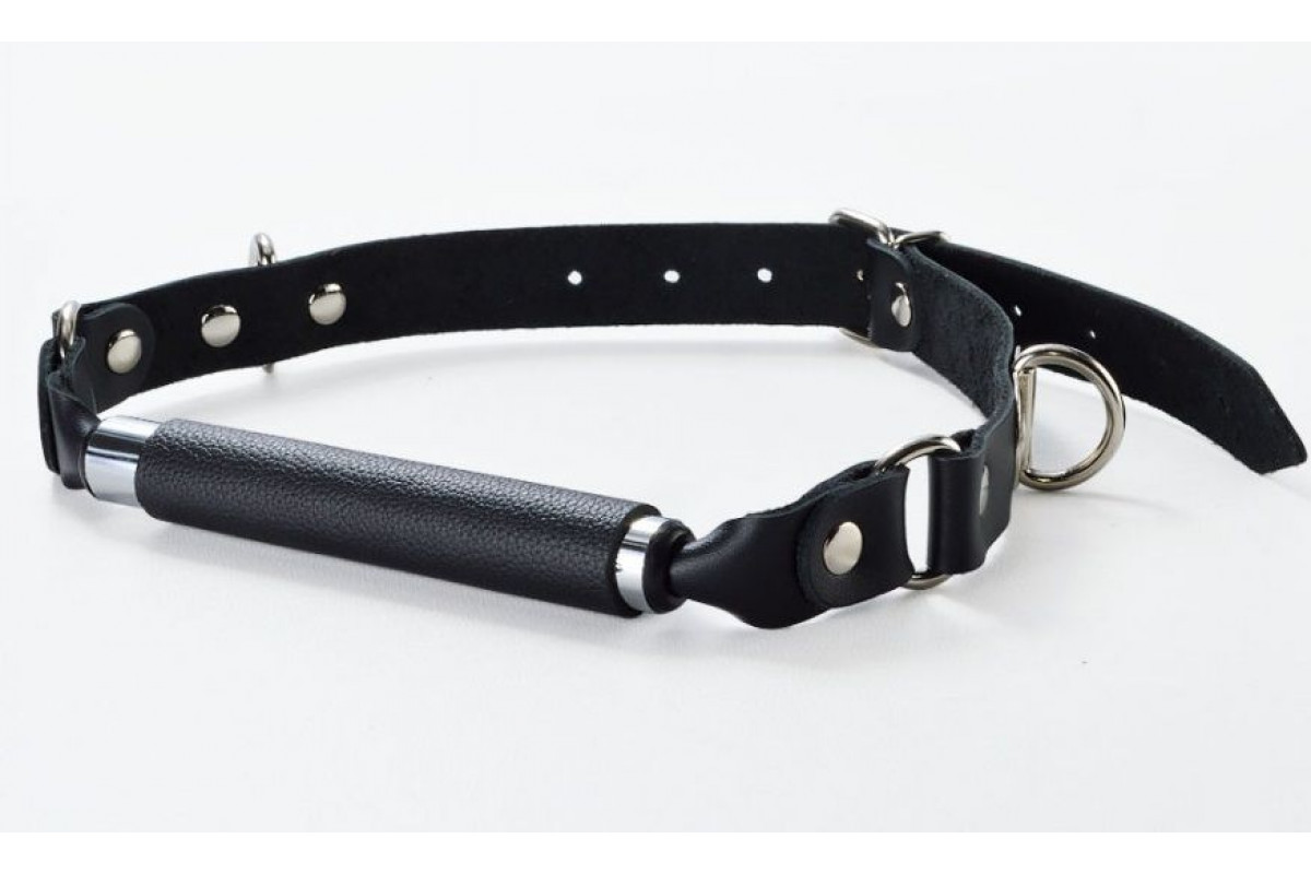 Чёрный кляп-трензель на кожаных ремешках с застёжкой — добавьте остроты в ваши интимные игры