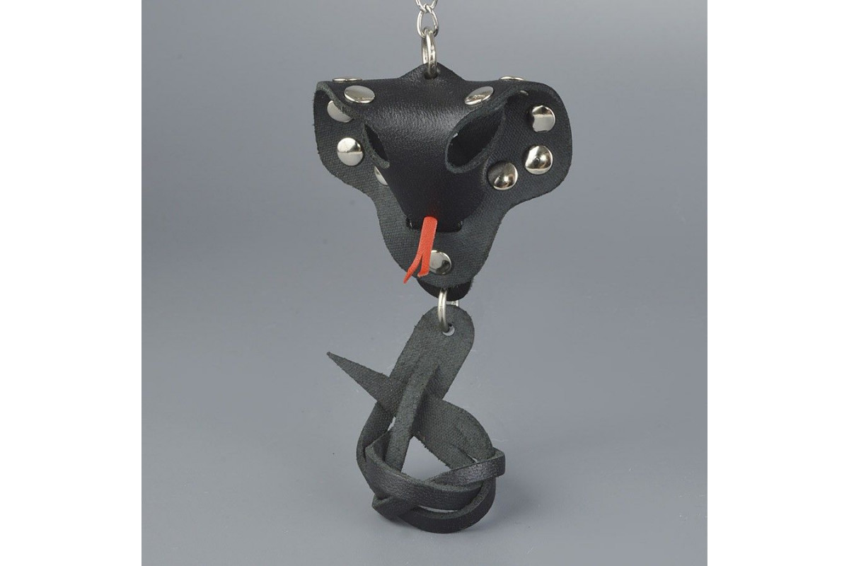Изготовленный из натуральной кожи высокого качества, этот брелок отличается прочностью и долговечностью. Мастерская работа создает реалистичную и детализированную форму кобры, которая привлекает внимание и вызывает интерес. Его гладкая поверхность и аккуратные швы делают его не только практичным, но и стильным аксессуаром.