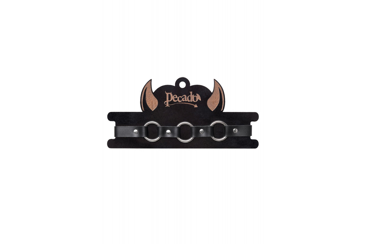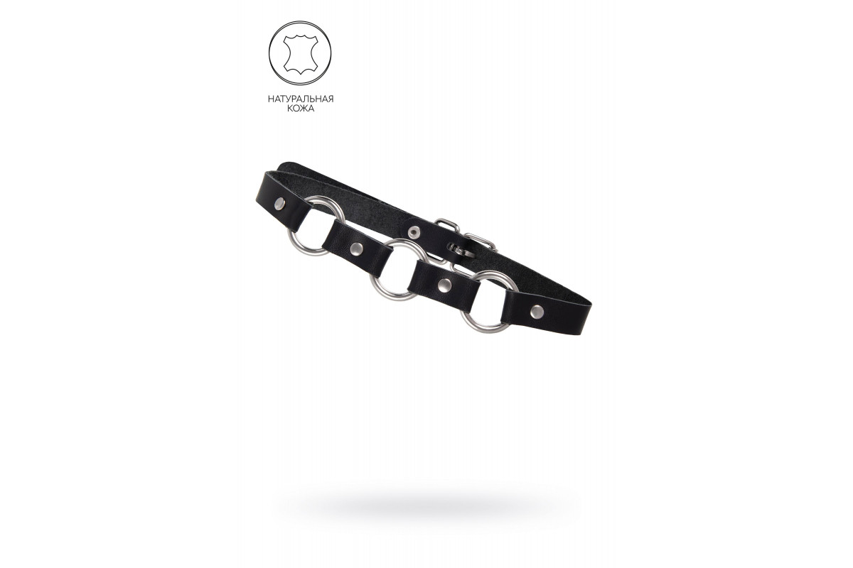 Черный кожаный чокер-ошейник с тремя кольцами — стильное и выразительное украшение для взрослых