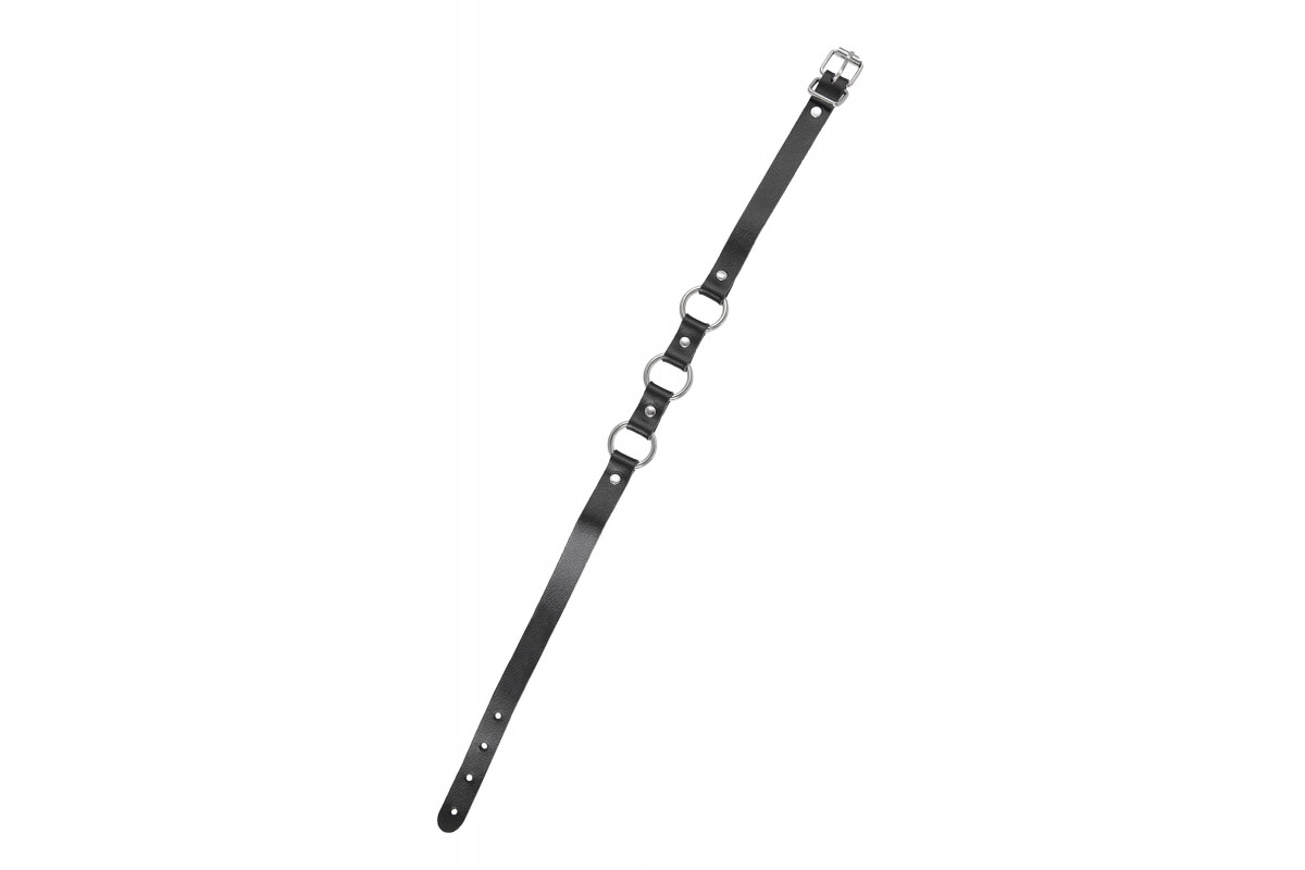 Черный кожаный чокер-ошейник с тремя кольцами