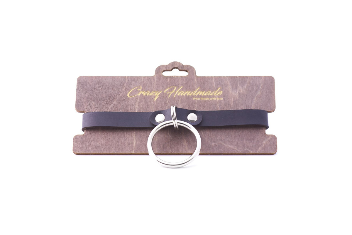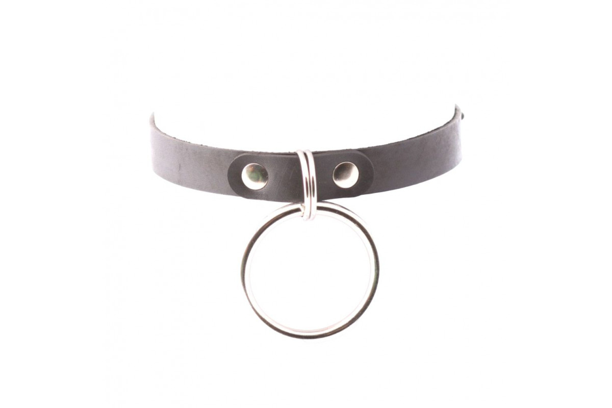 Черный кожаный чокер с большим кольцом — стильный аксессуар для взрослых