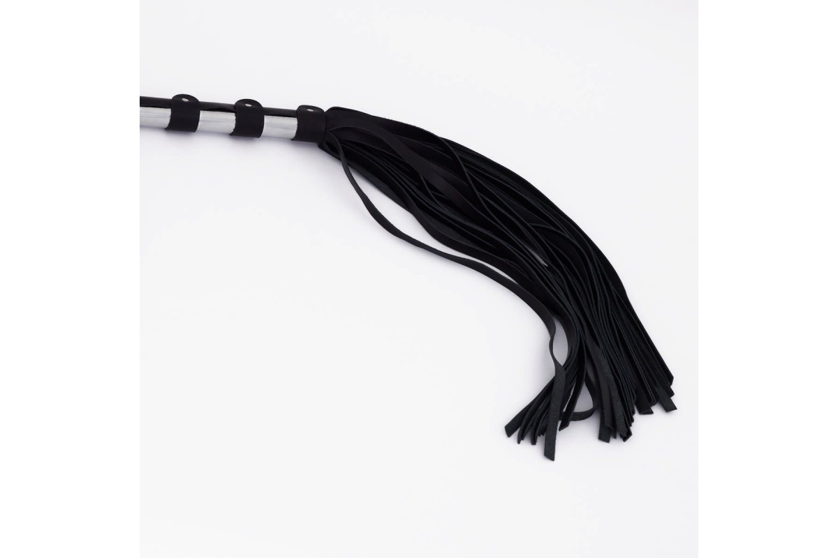 Черный кожаный флоггер со стальной ручкой – 45 см