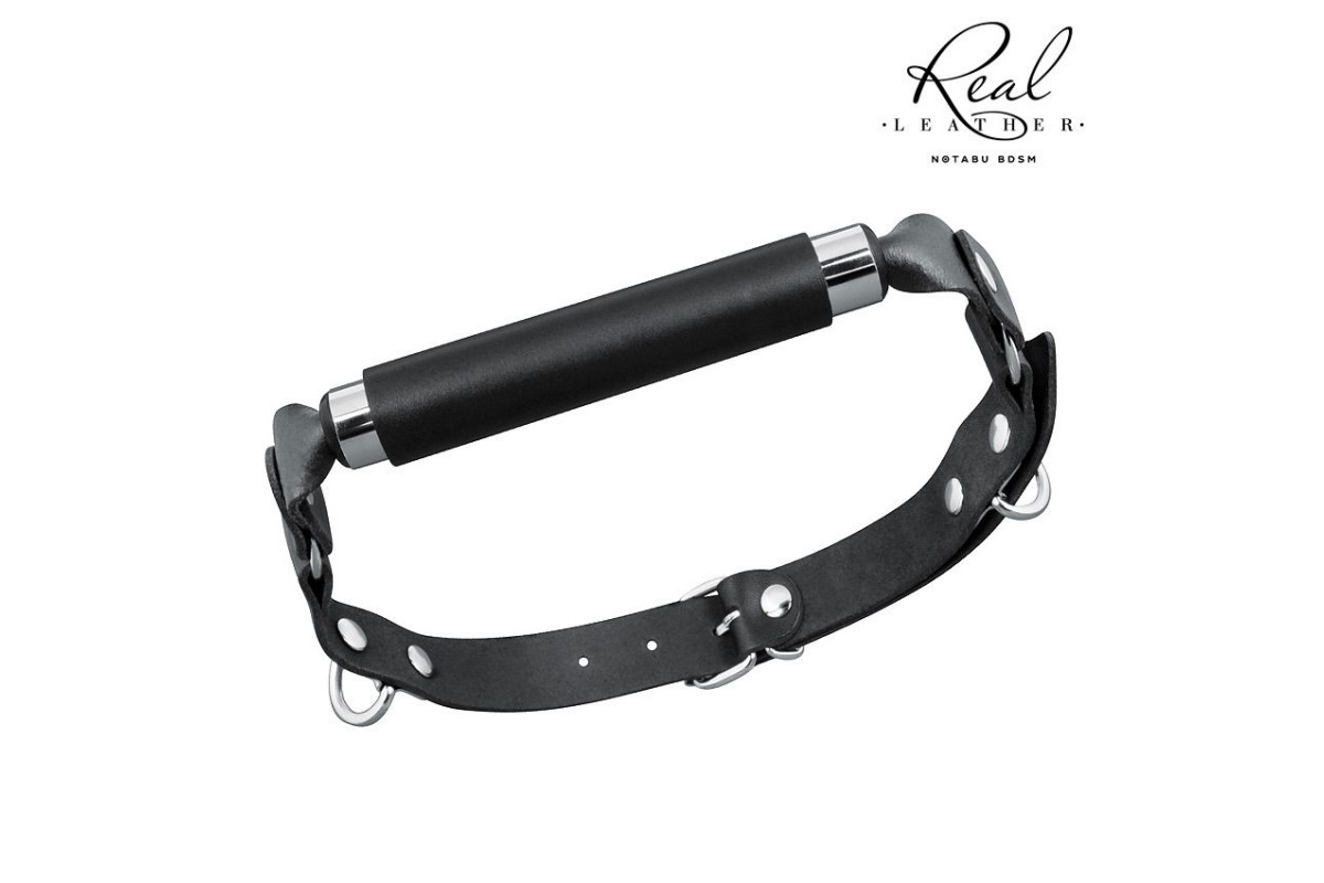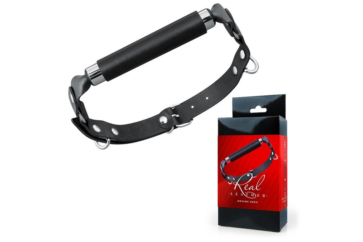 Черный кожаный кляп-трензель – стильное и безопасное средство для BDSM-игр