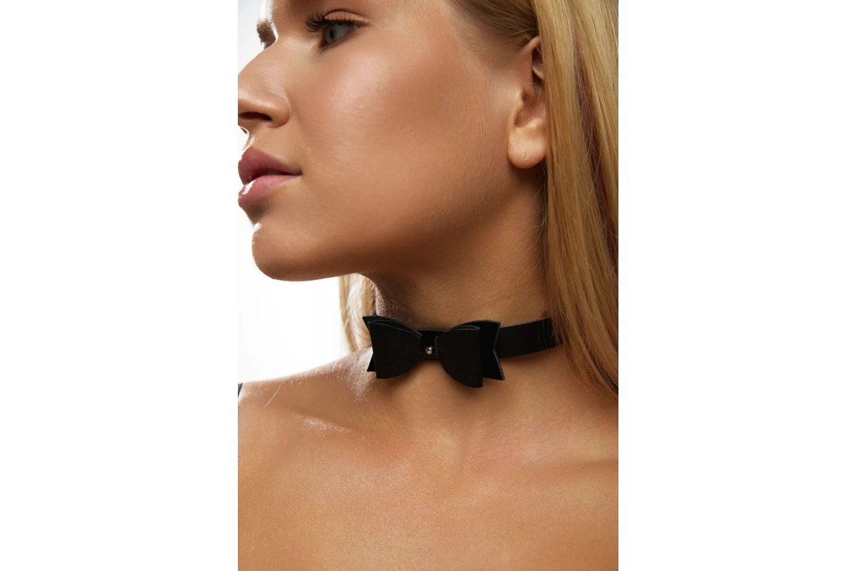 Черный кожаный однослойный чокер с бабочкой — стильный аксессуар для взрослых