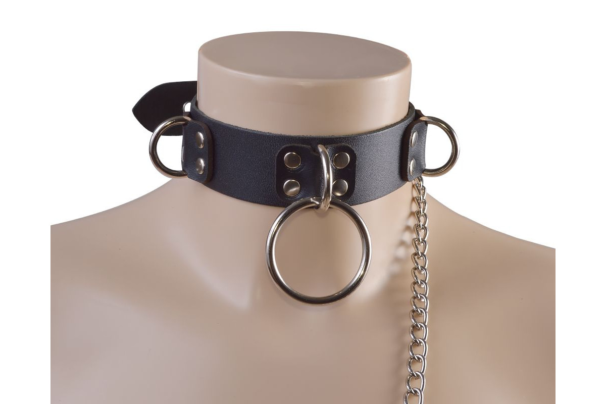 Черный кожаный ошейник Big Ring — стильный и элегантный аксессуар для взрослых