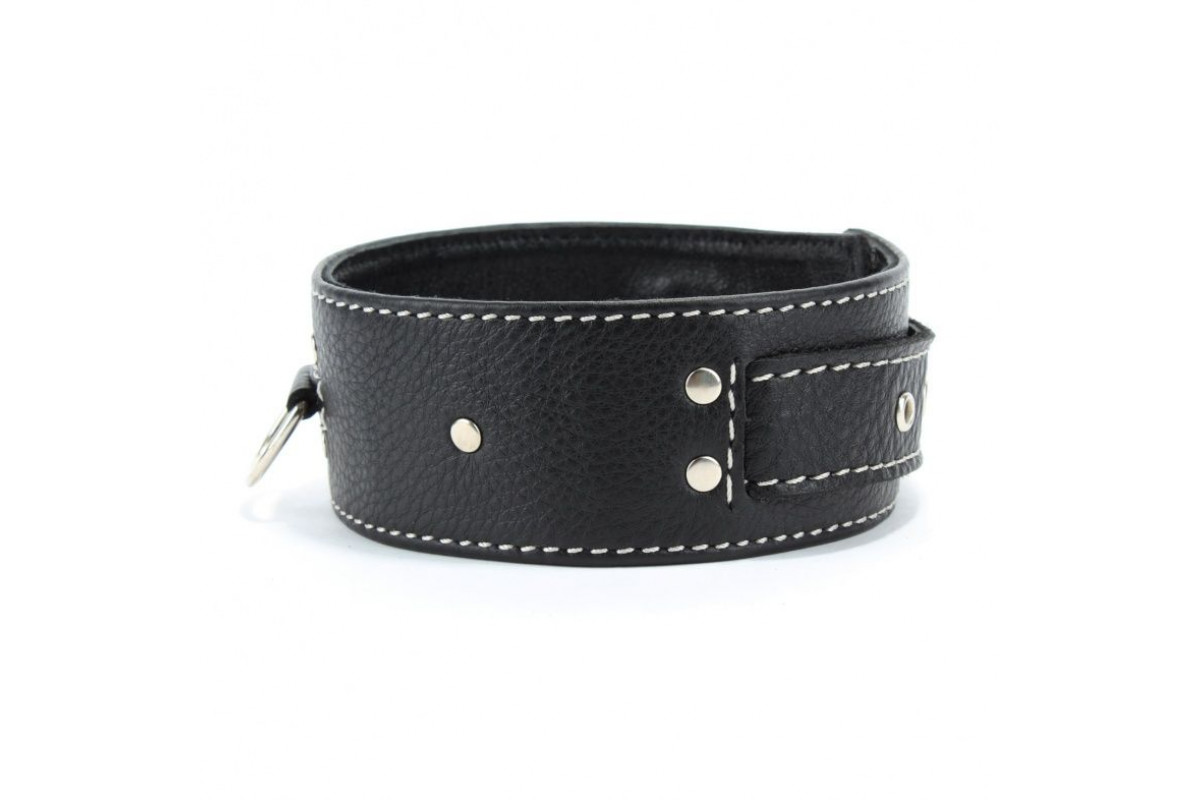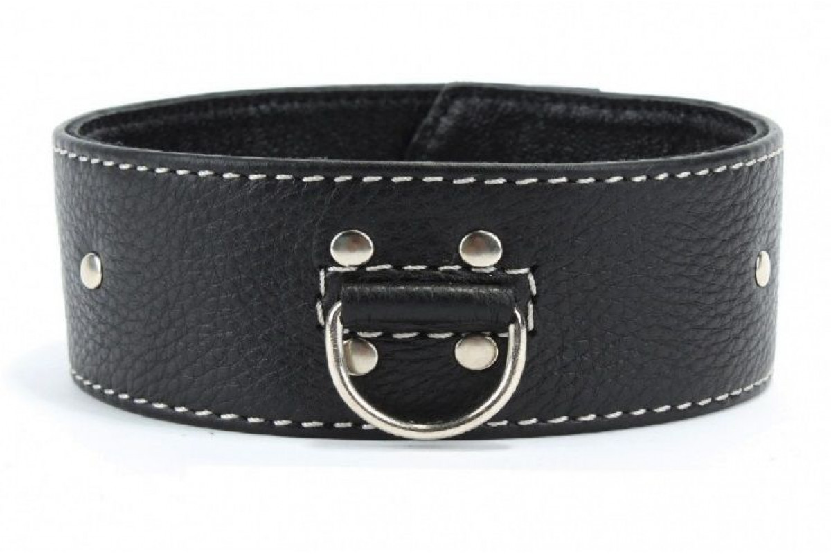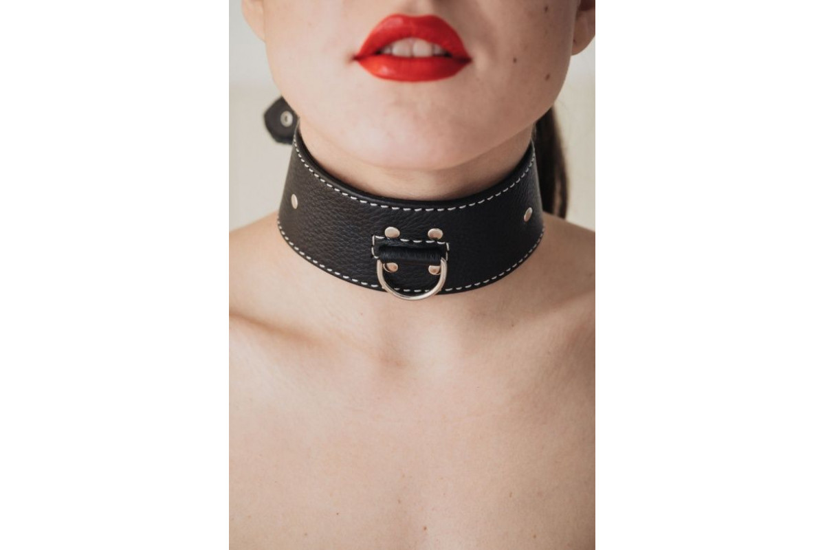 Черный кожаный ошейник с полукольцом для поводка — стильное и надежное украшение для взрослых