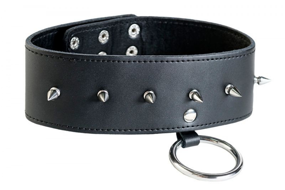 Элегантность и дерзость: чёрный кожаный ошейник с шипами