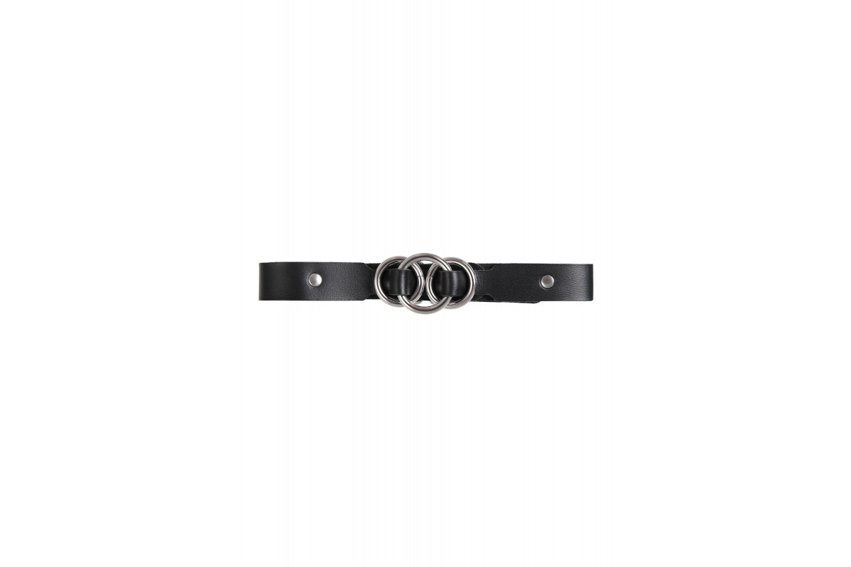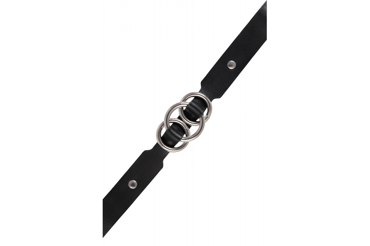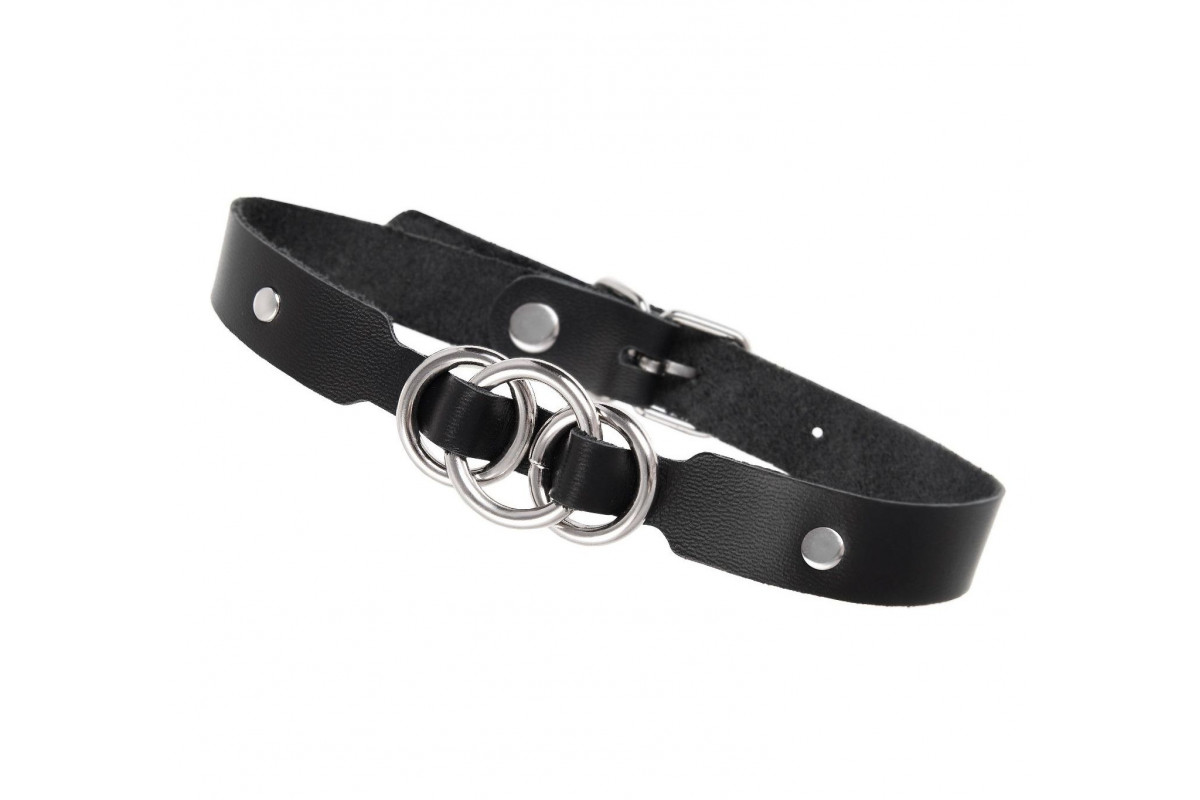 Черный кожаный ошейник со связанными кольцами