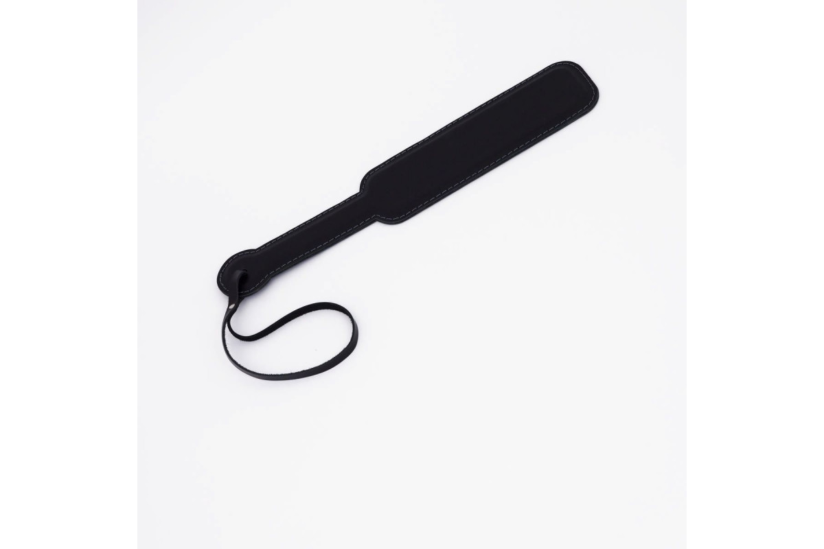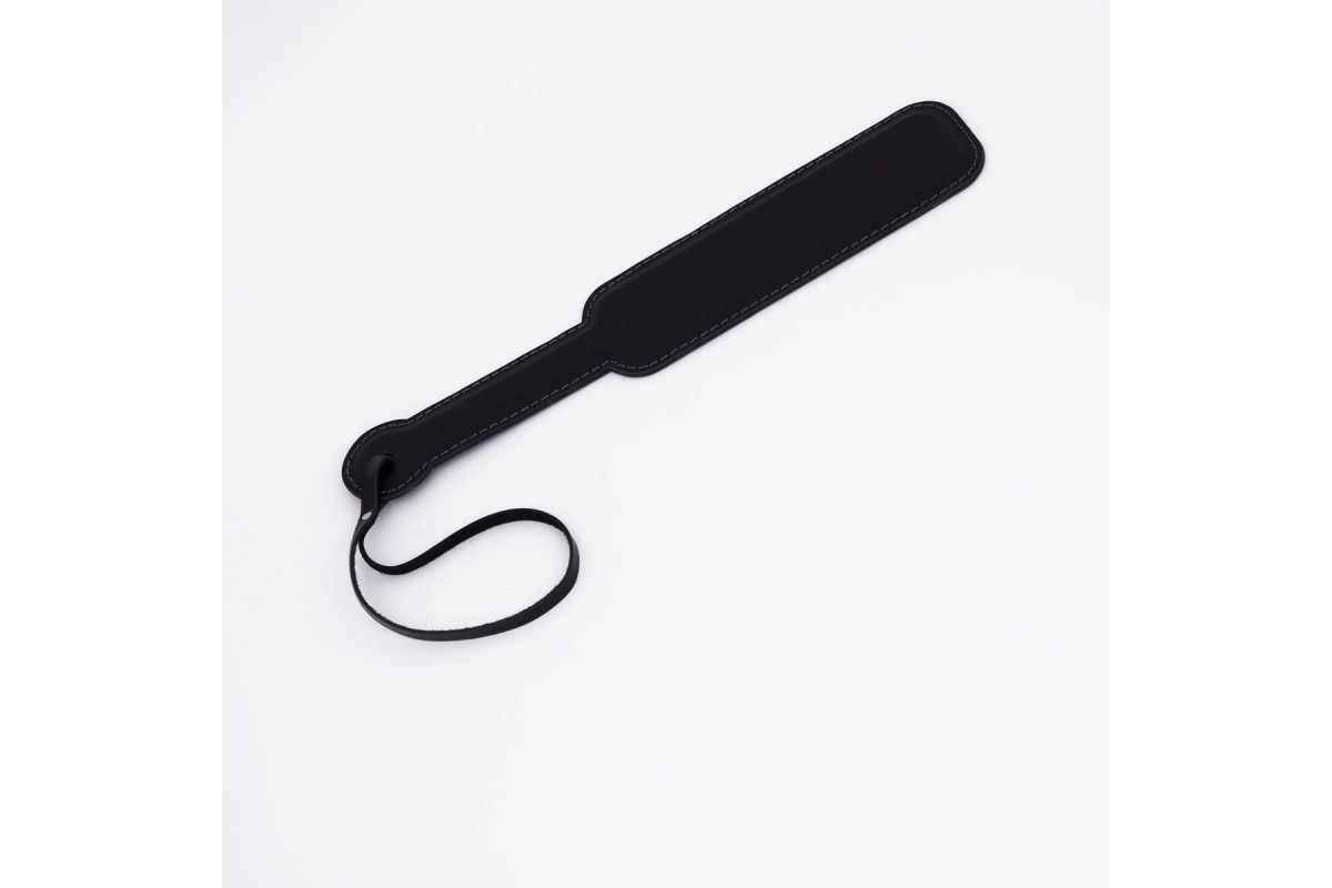 Изделие выполнено из натуральной кожи черного цвета , которая обтягивает прочную гибкую основу. Такая конструкция обеспечивает долговечность и надежность паддла, а также делает его использование максимально комфортным. Ударная часть украшена белой декоративной строчкой , которая добавляет изделию стильный контрастный акцент и подчеркивает его уникальный дизайн.