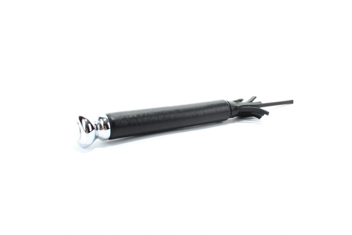 Чёрный кожаный стек с прямоугольным шлепком - 64 см.
