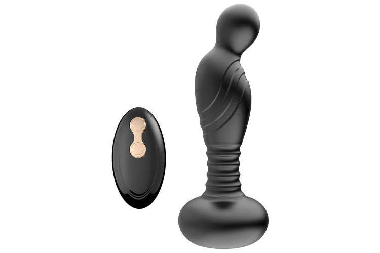 Черный массажер простаты с вибрацей и возвратно-поступательными движениями
