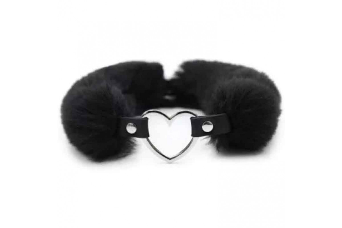 Черный меховой ошейник с металлическим сердечком — стильное и эротичное украшение для взрослых