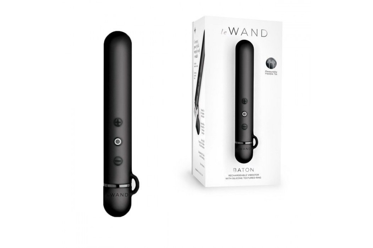 Черный мини-вибратор Le Wand Baton с текстурированной насадкой — 11,9 см