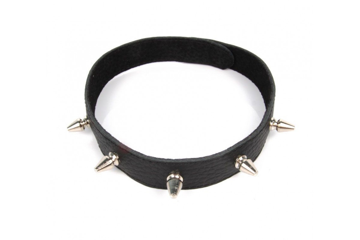 Черный ошейник на липучке с металлическими шипами — стильный аксессуар для взрослых