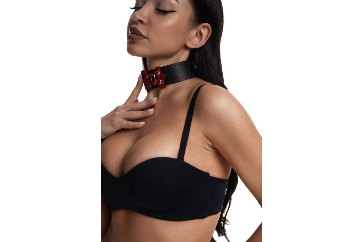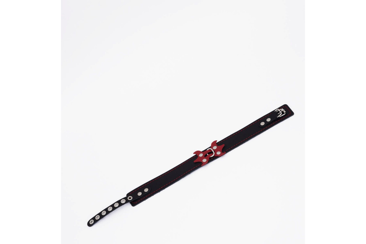 Черный ошейник с красным декором и строчкой — элегантность и страсть в каждом деталях
