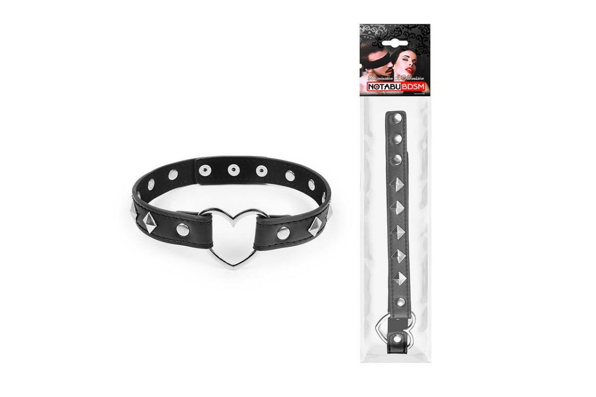 Черный ошейник с серебристыми ромбиками и сердечком — стильный аксессуар для взрослых