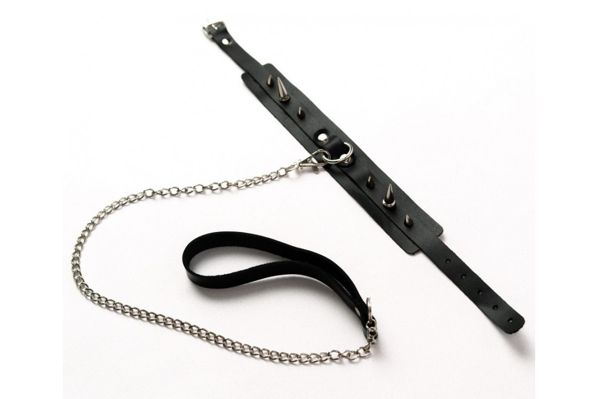 Черный ошейник с шипами и поводком — стильное и мощное дополнение для ваших игр