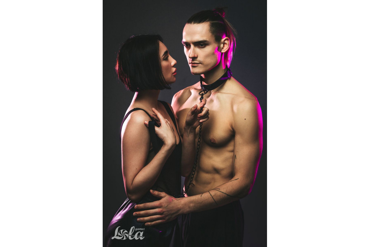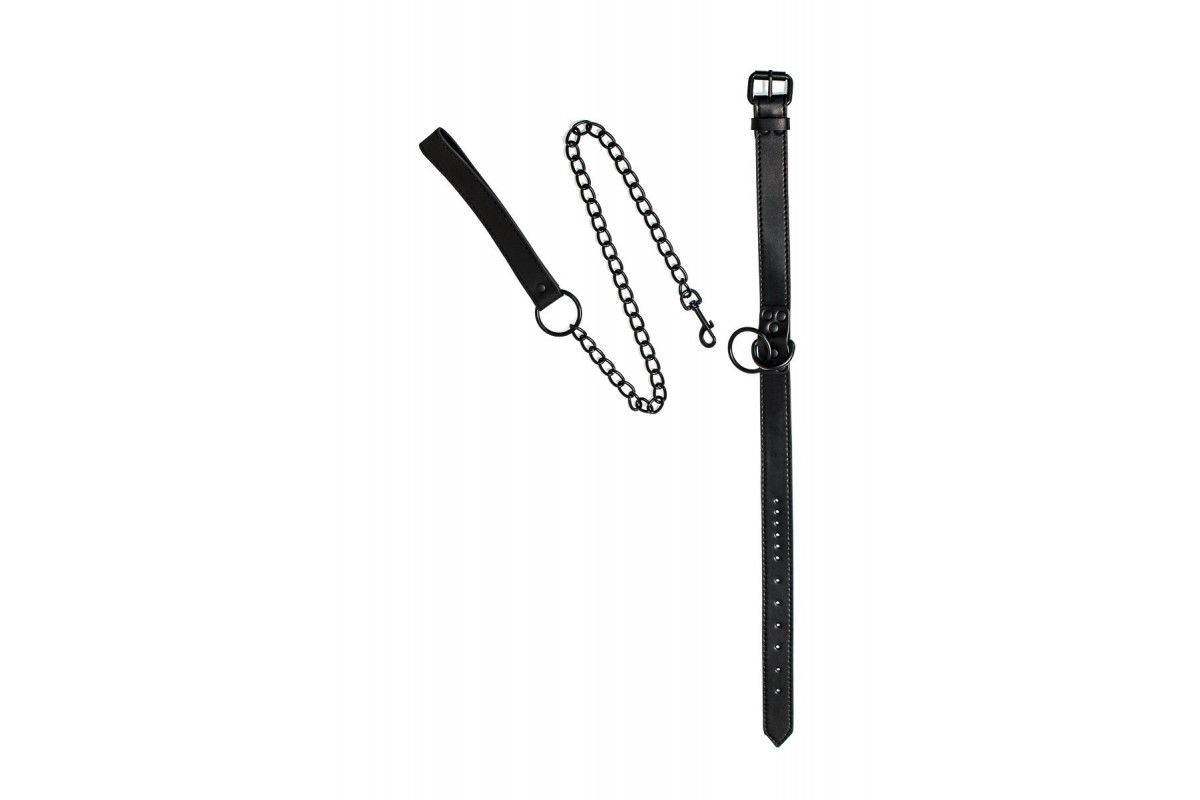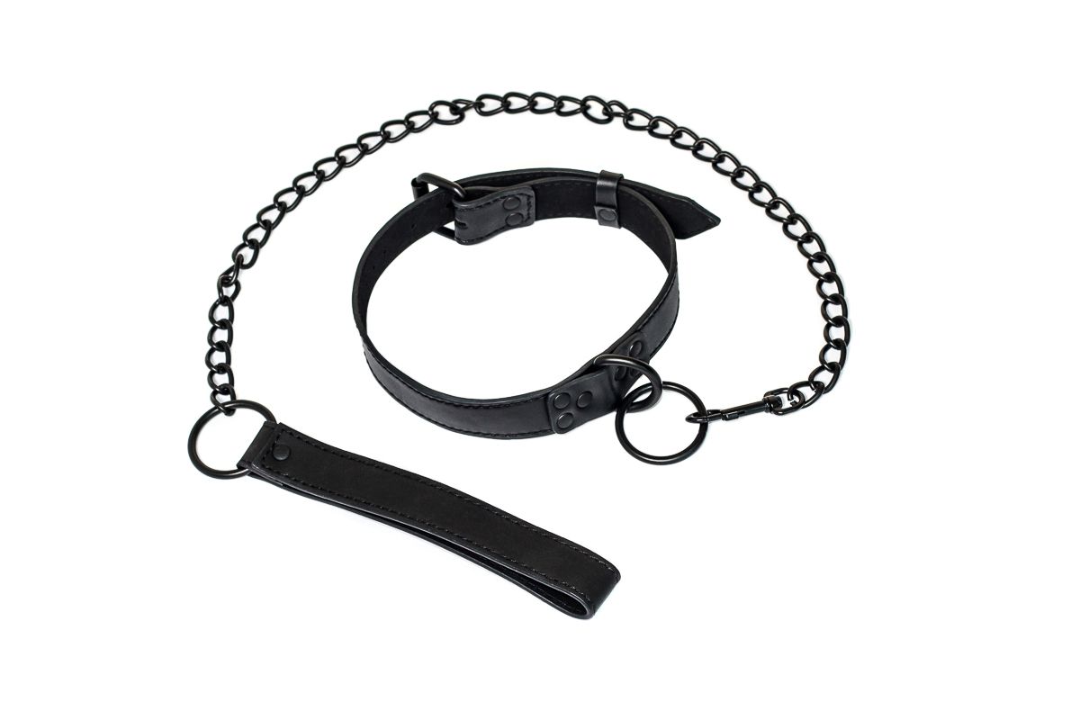 Черный ошейник Sin с поводком — стильное и функциональное изделие для взрослых