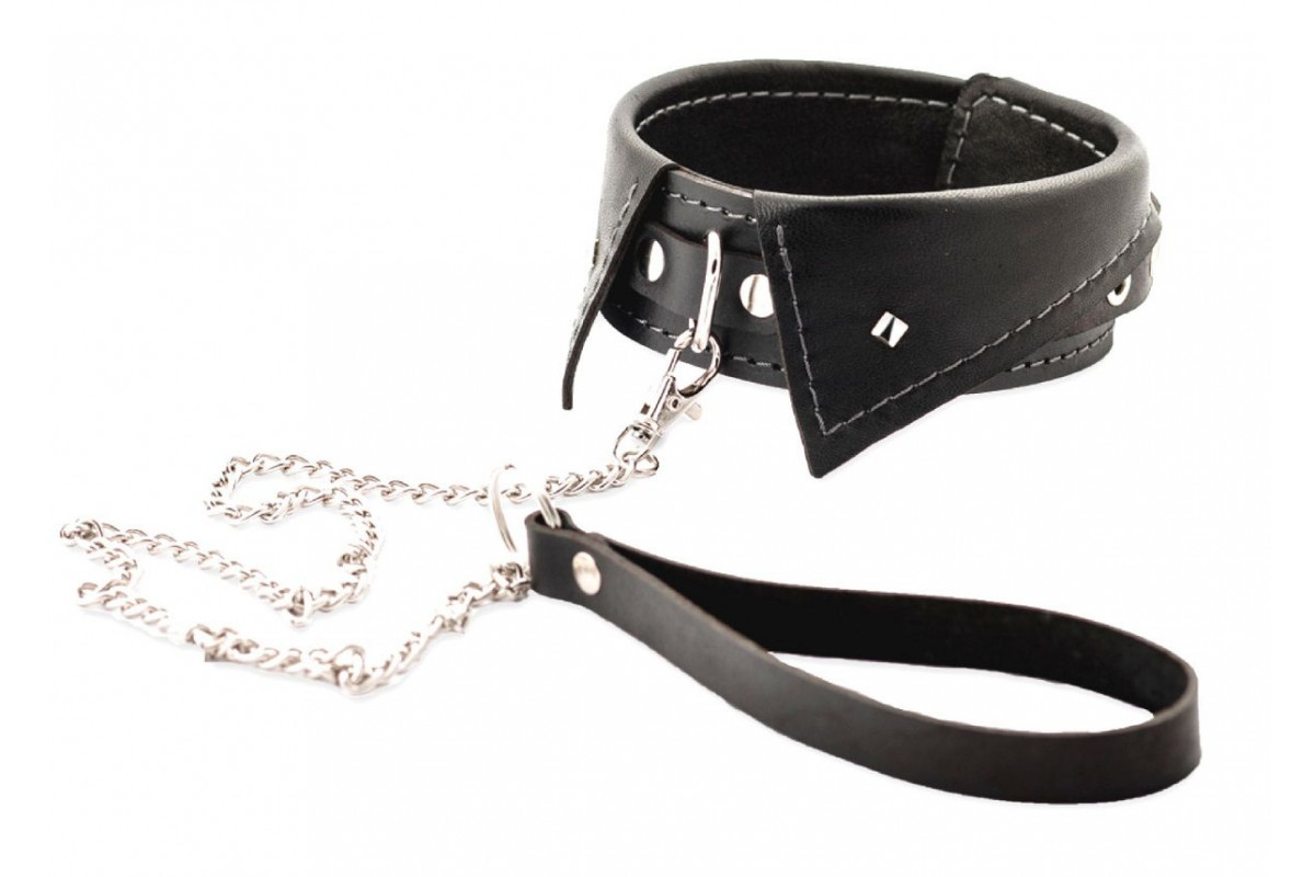 Черный ошейник-воротничок с металлическим поводком — стильное и функциональное решение для взрослых