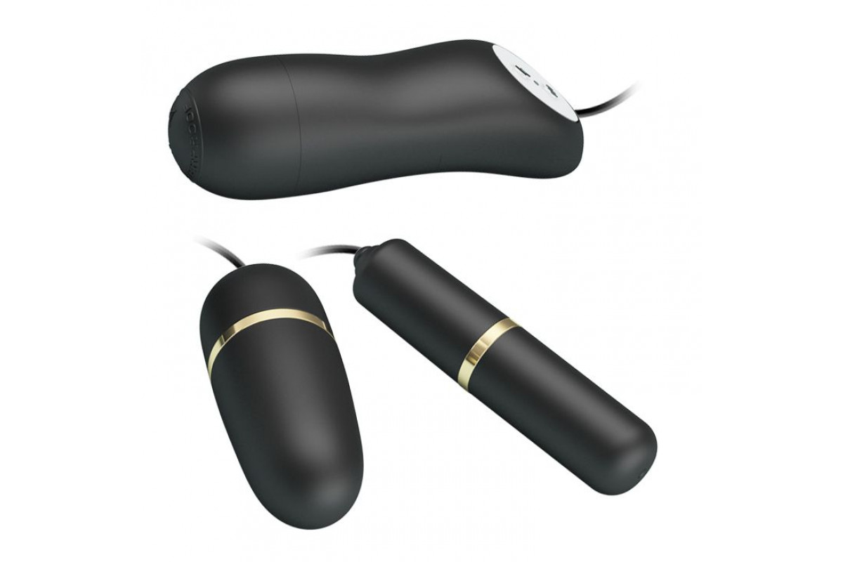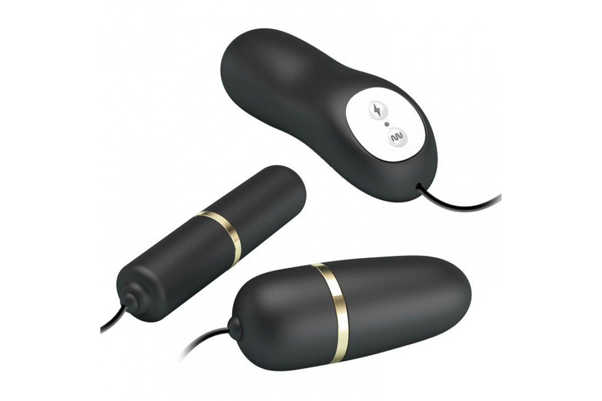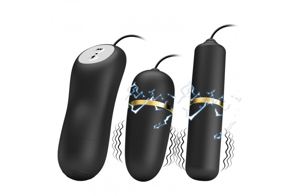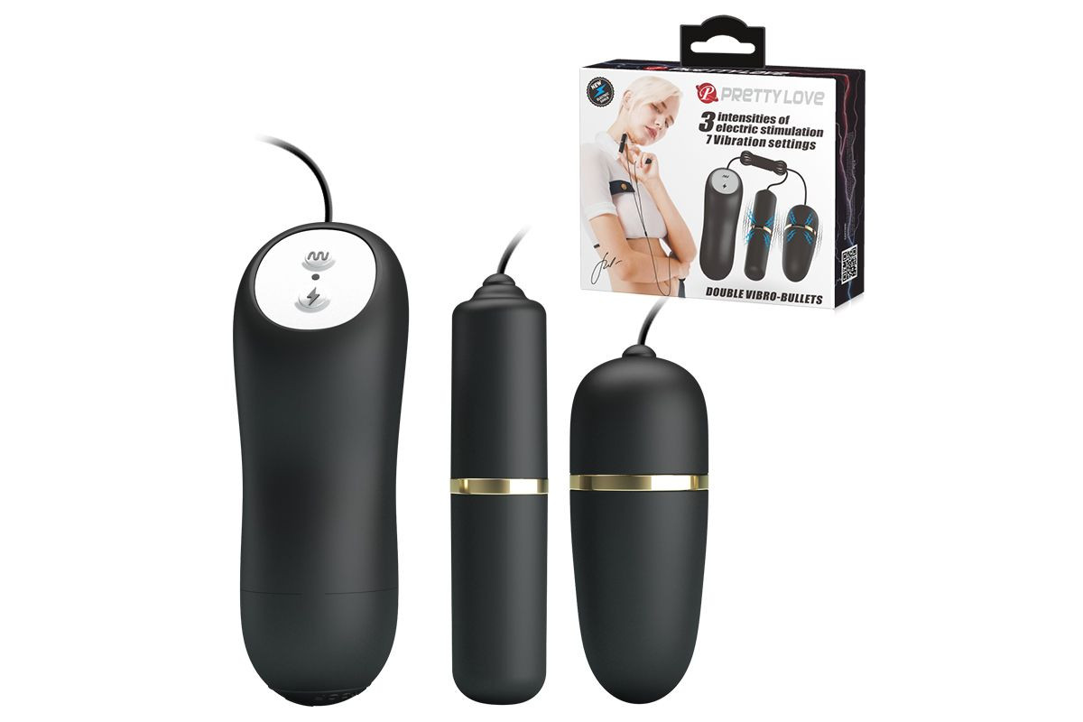 Черный проводной набор с электростимуляцией: виброяйцо и вибропуля