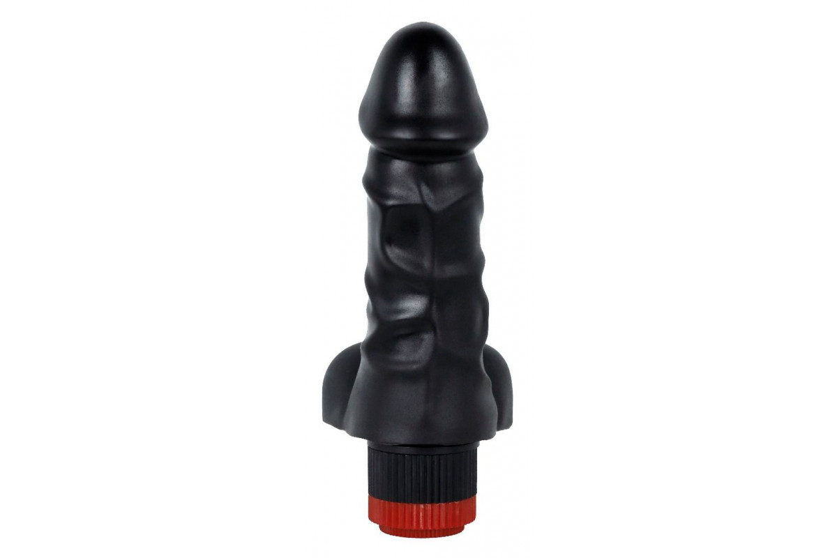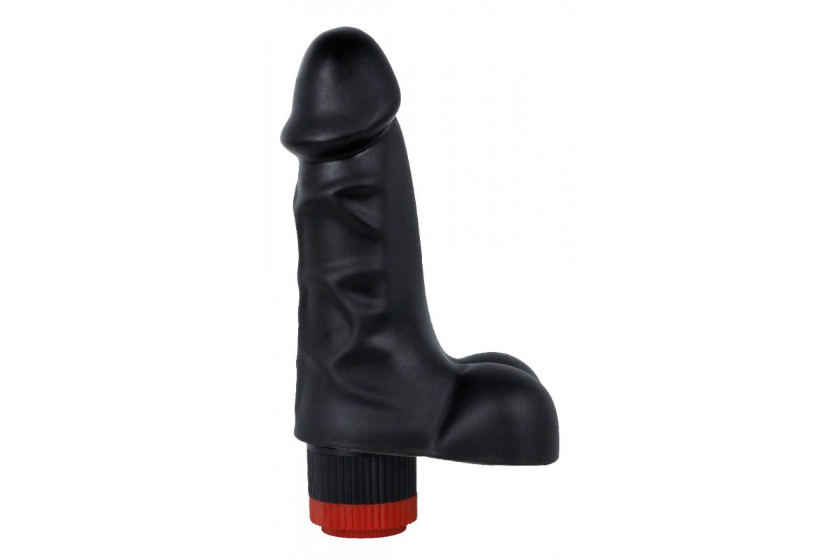 Черный реалистичный вибратор с мошонкой — 16,5 см