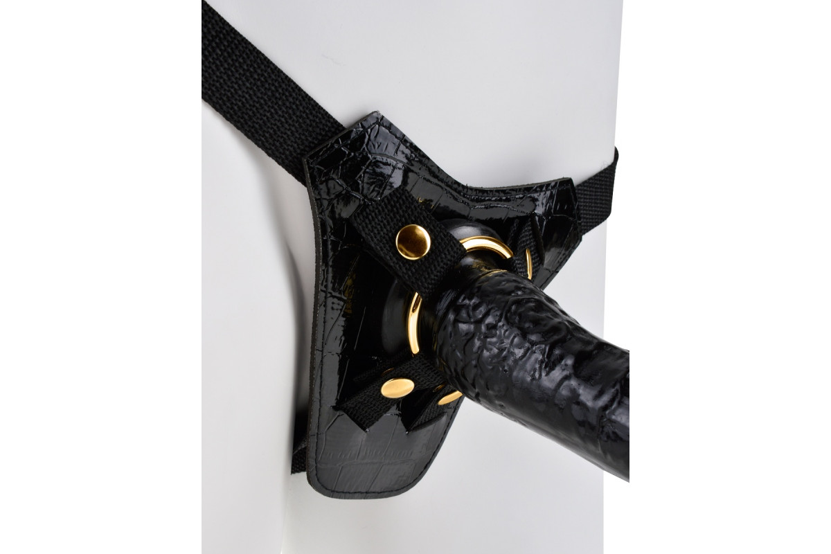 Элегантный и роскошный женский страпон Designer Strap-On: черный с золотом