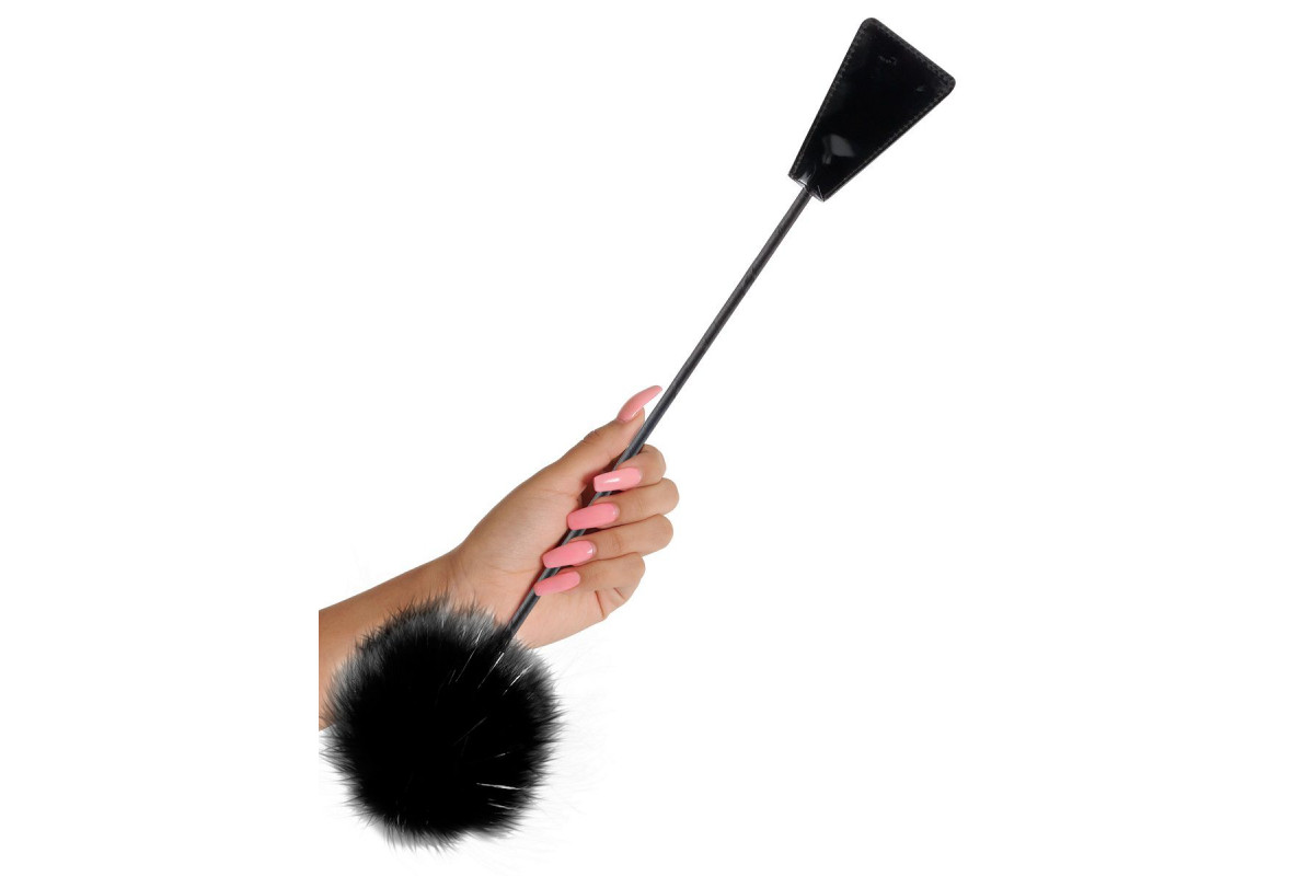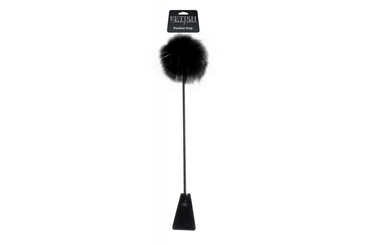 Эротический аксессуар для взрослых: Черный стек Feather Crop с пуховкой на конце – 53,3 см
