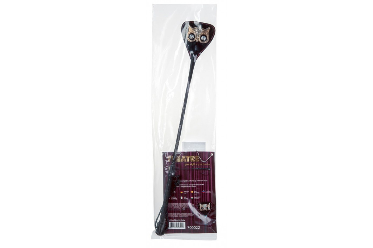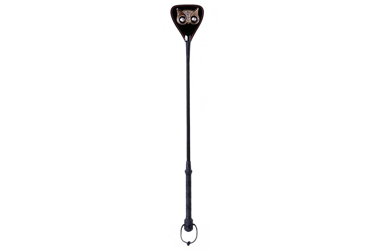 Чёрный стек с совой на кожаном наконечнике - 55 см.