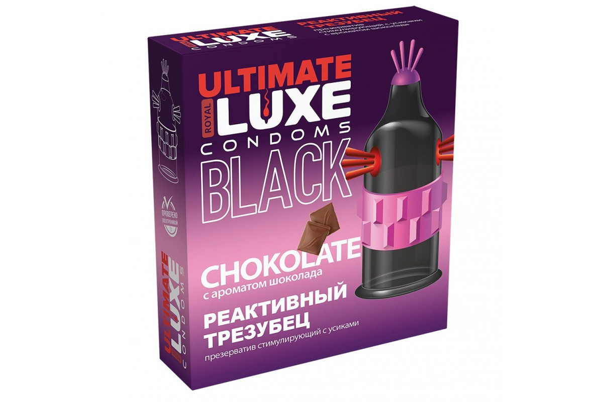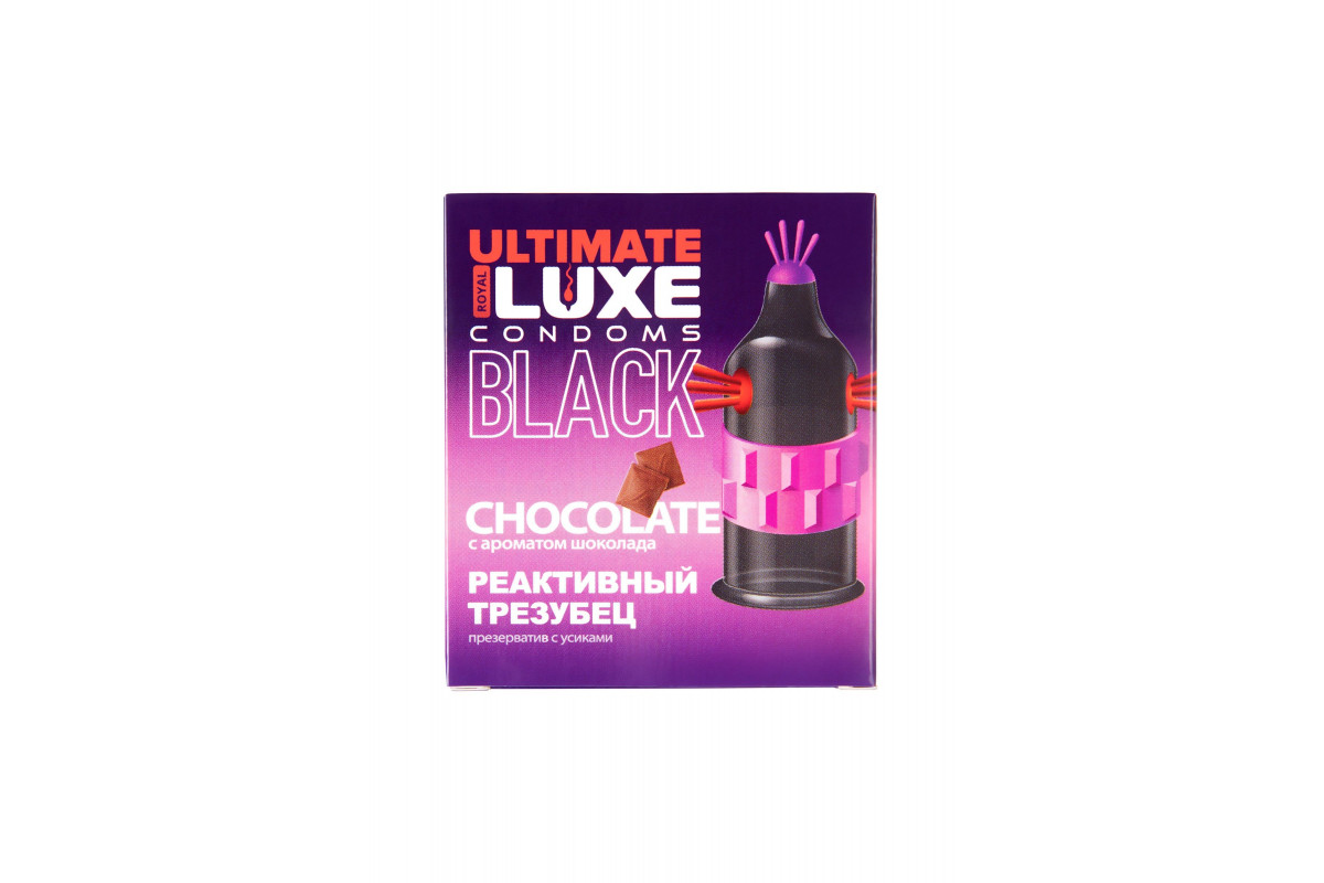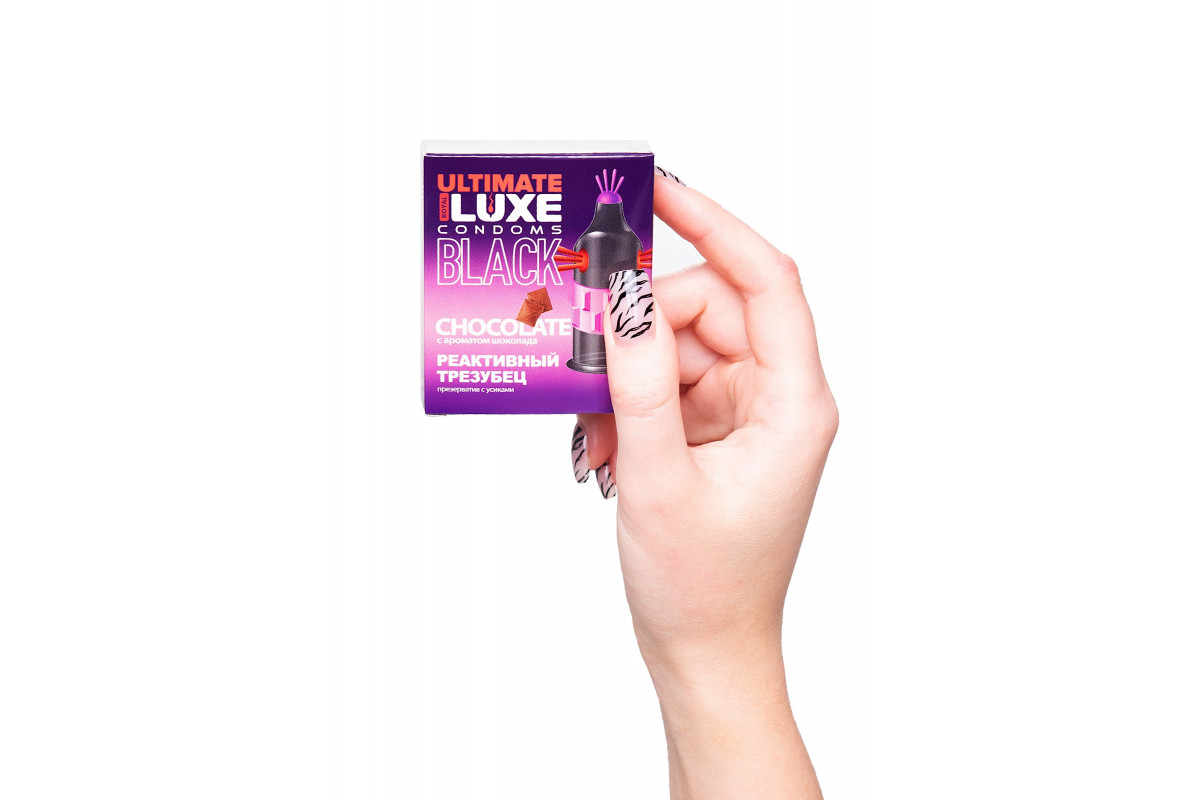 Черный стимулирующий презерватив «Реактивный трезубец» с ароматом шоколада — 1 шт.