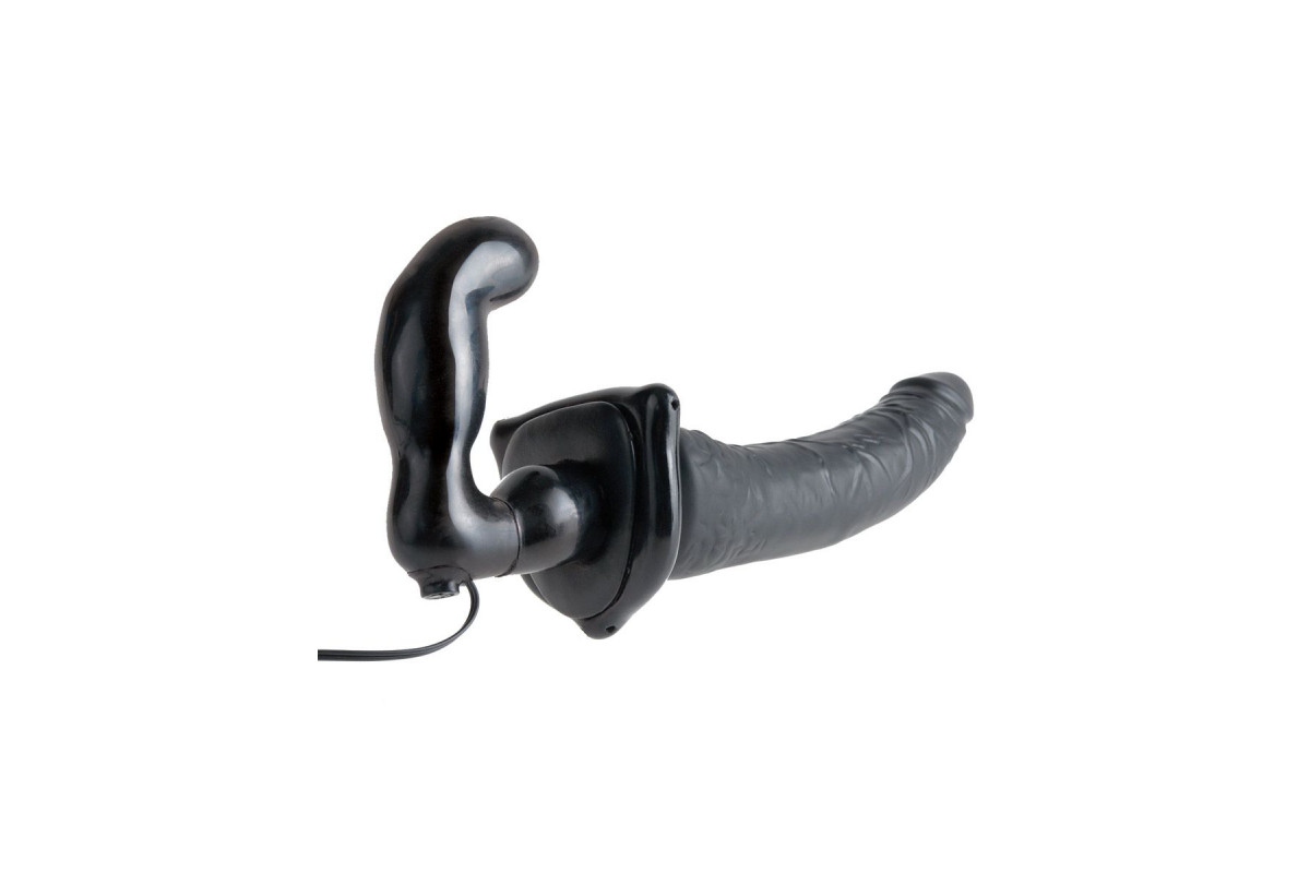 Черный страпон с вагинальной пробкой Deluxe Vibrating Penetrix Strap-On — 19 см