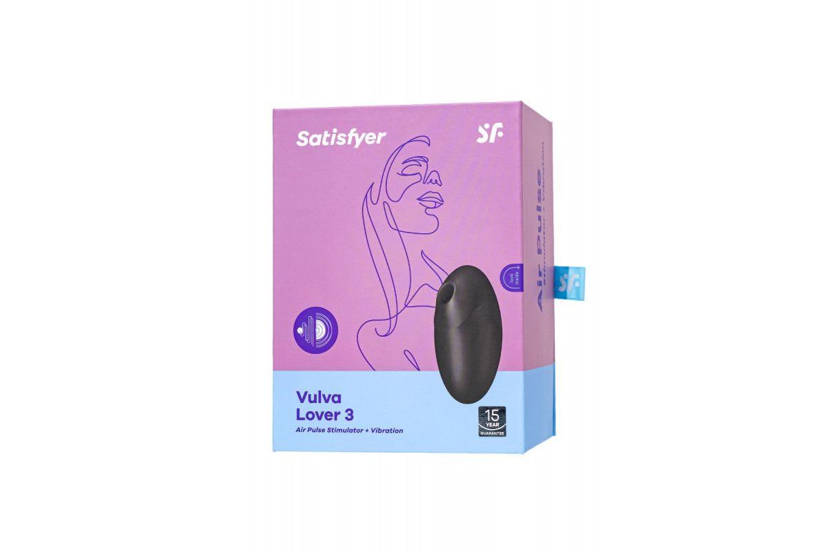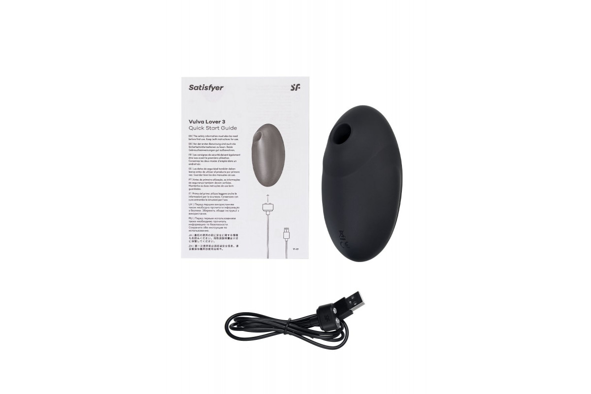 Черный вакуум-волновой стимулятор с вибрацией Vulva Lover 3 — максимум наслаждения