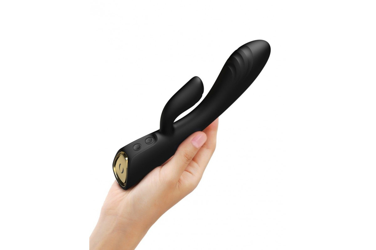 Товар имеет две кнопки. Верхнюю кнопку нужно нажать и удерживать, чтобы включить или выключить устройство (при включении на кнопке загорается голубой индикатор). Затем вы можете переключаться между 9 режимами вибрации в клиторальном отростке, кратковременно нажимая эту же кнопку. Нажмите нижнюю кнопку, чтобы включить вибрацию в вагинальном отростке, затем снова нажмите эту кнопку, чтобы переключиться между 9 режимами. Для включения функции подогрева необходимо зажать и удержать нижнюю кнопку, после чего она загорится красным индикатором, и игрушка будет постепенно нагреваться в области вагинального отростка до 40 градусов.