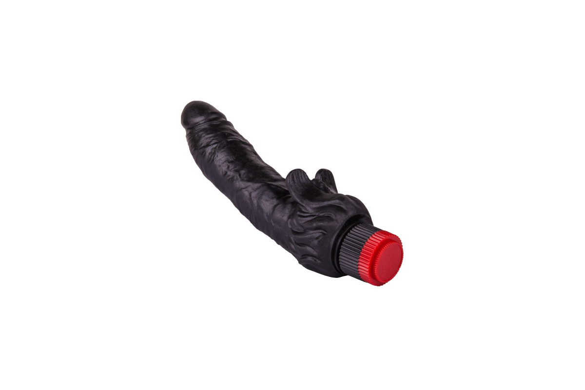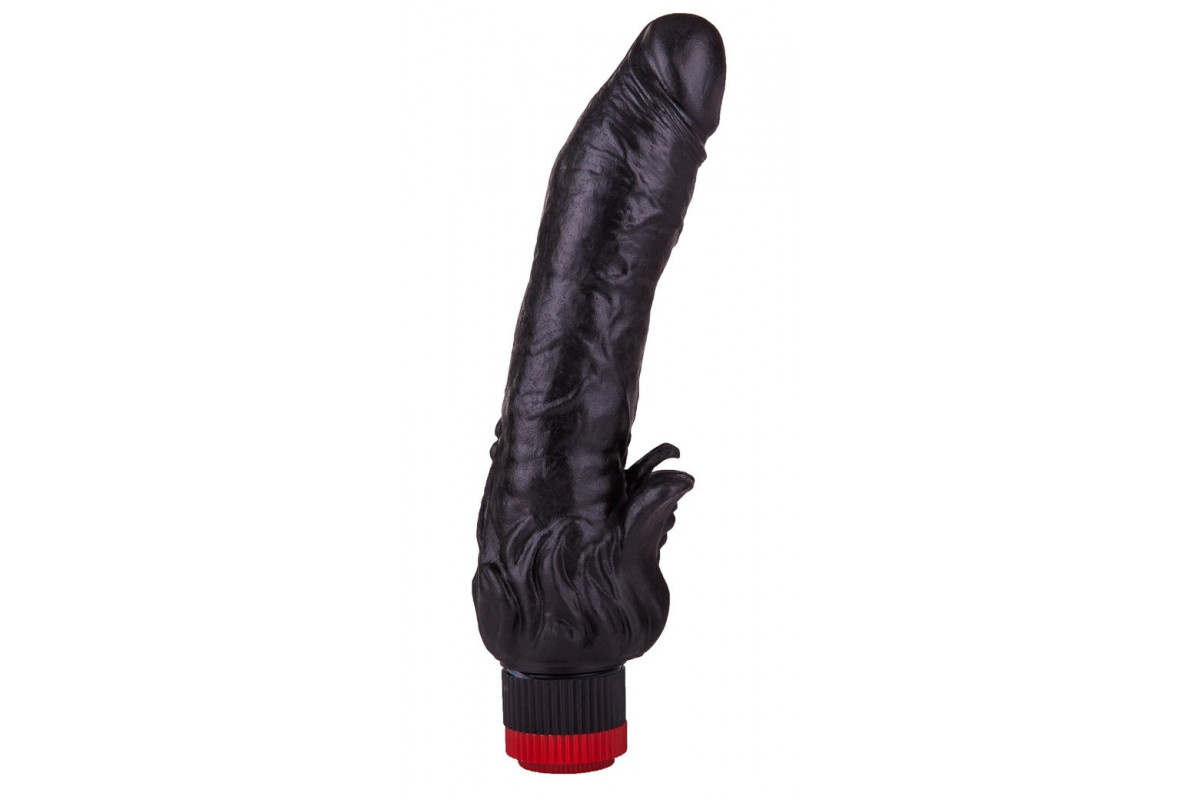 Чёрный вибратор с клиторальными лепестками - 18,5 см.