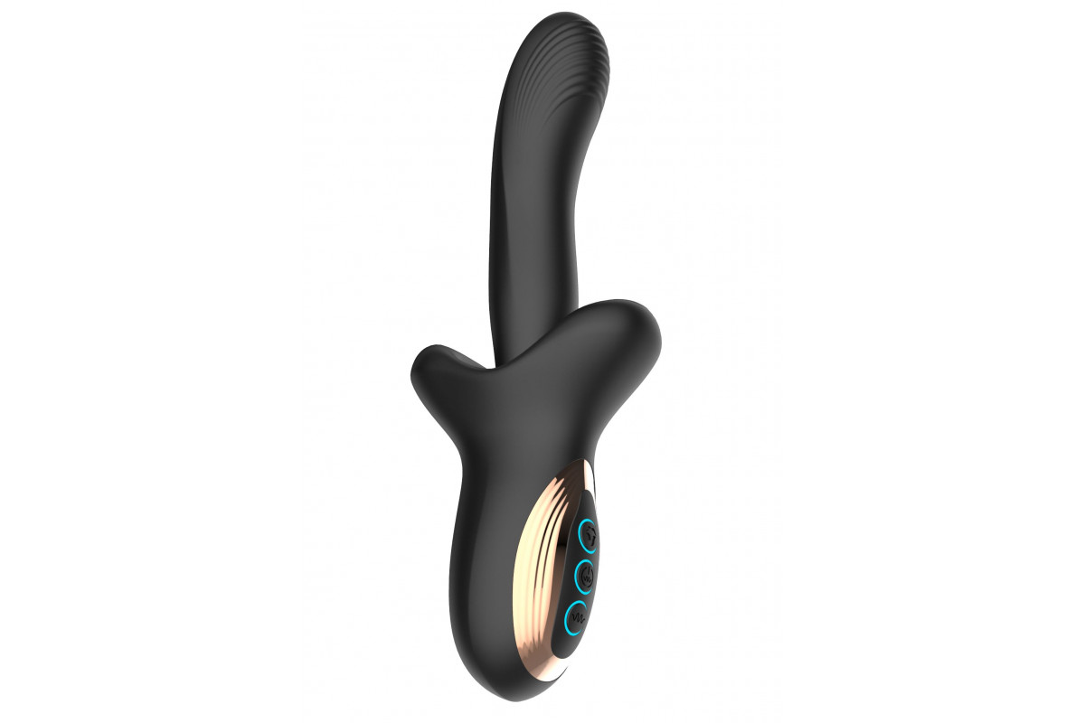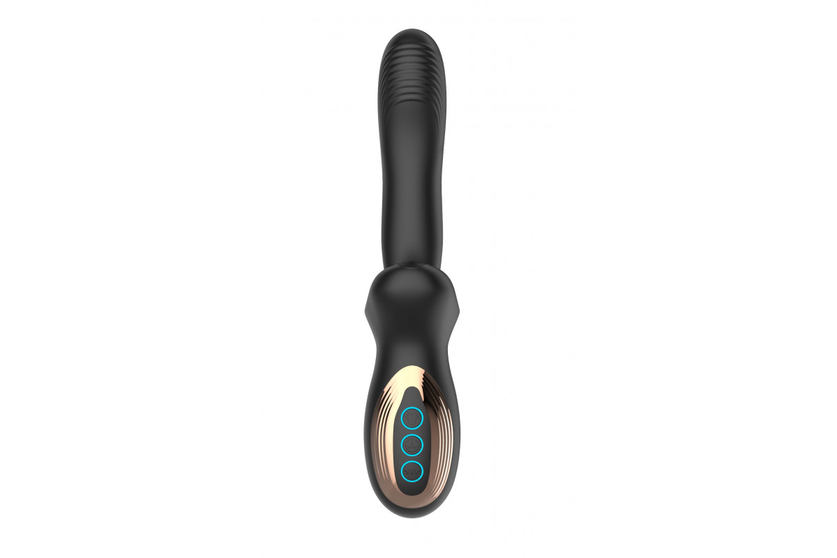 Черный вибратор с постукивающим эффектом выполнен в стильном, изящном корпусе, который приятно лежит в руке и обеспечивает удобство во время использования. Его дизайн сочетает в себе современность и элегантность, что делает его не просто инструментом для удовольствия, а настоящим аксессуаром для тех, кто ценит эстетику и комфорт. 22-сантиметровая длина позволяет достигать глубоких ощущений, а специально разработанная форма обеспечивает идеальное сочетание стимуляции внутренних и наружных зон.