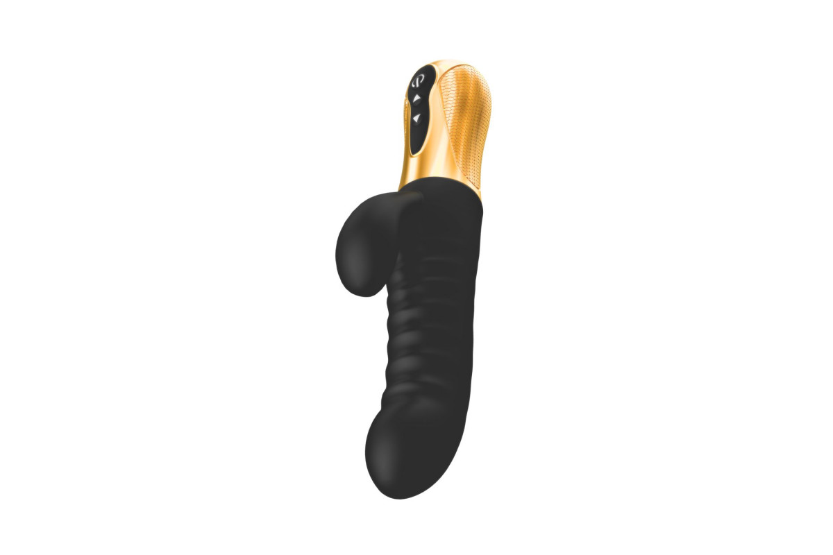 Черный вибратор с возвратно-поступательными движениями Big Thrust Rabbit - 23 см.