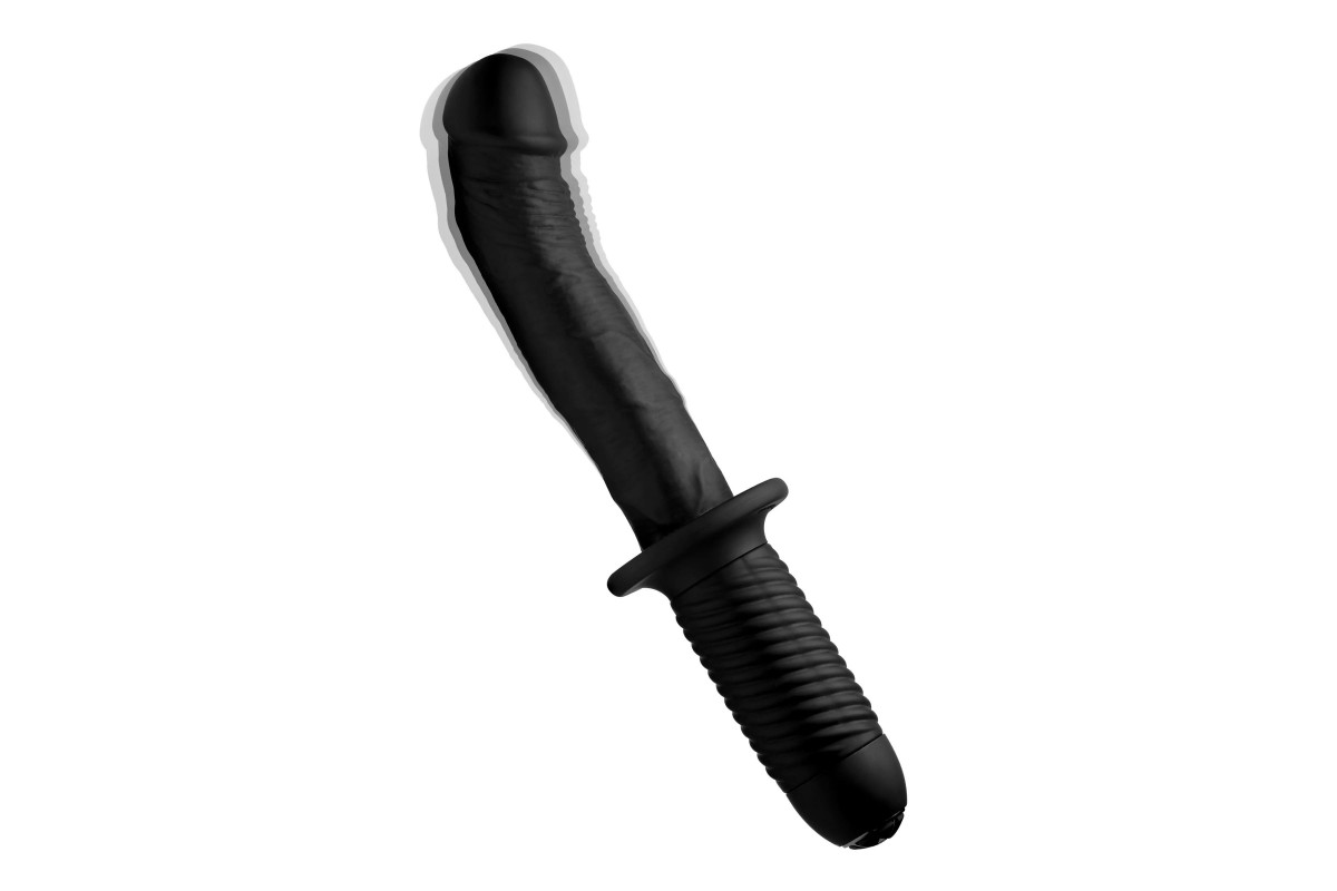Черный вибратор The Large Realistic 10X Silicone Vibrator with Handle — максимально реалистичный и мощный для незабываемых ощущений