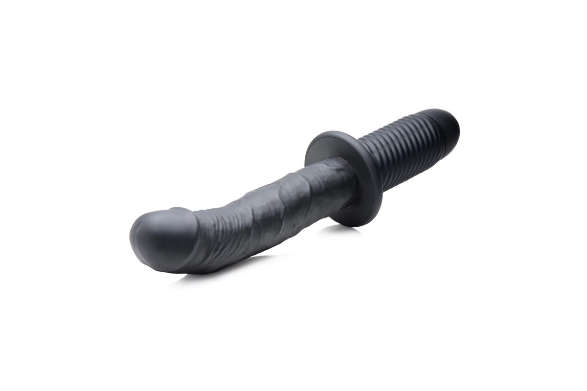 Черный вибратор The Large Realistic 10X Silicone Vibrator with Handle - 30,5 см.
