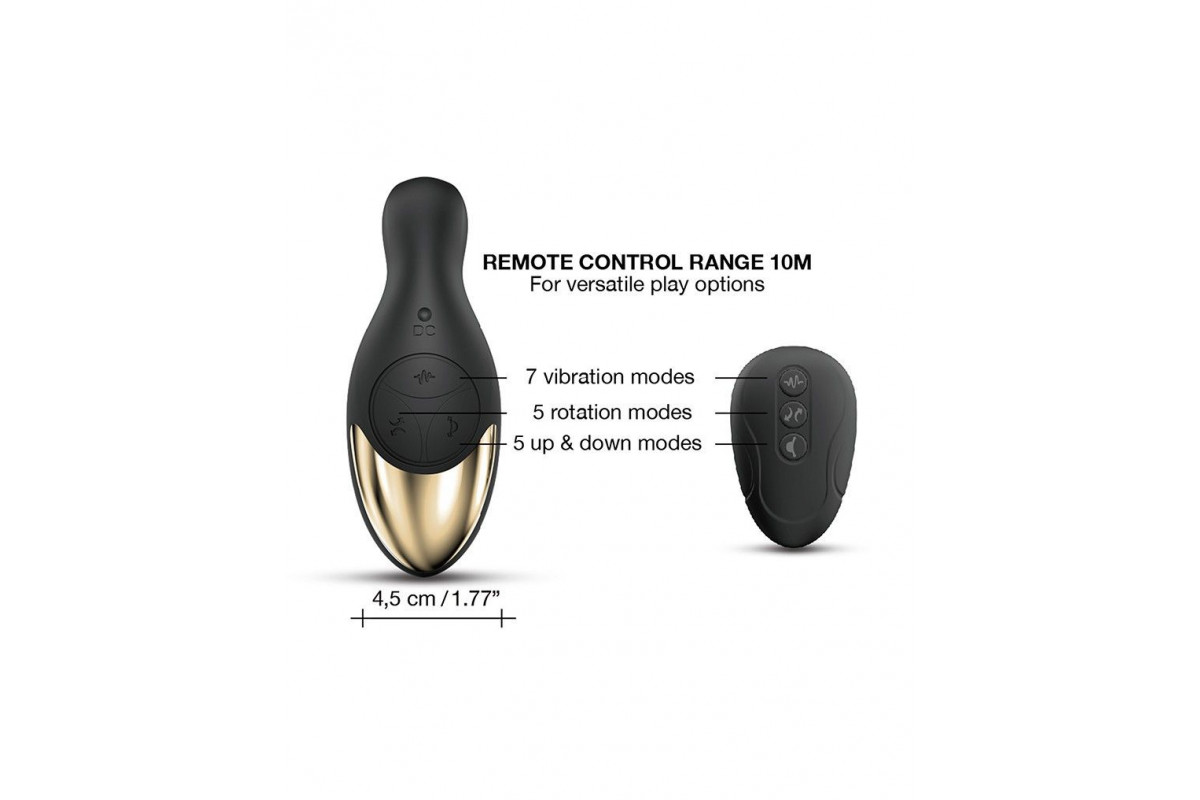 Переключайтесь между 7 режимами вибрации, 5 режимами движения вперед-назад и 5 режимами вращения с помощью пульта дистанционного управления и исследуйте удовольствие в полном объеме. Водонепроницаемость - splashproof IPx5 (защита от брызг).В комплекте зарядный шнурок и сумочка для хранения. Заряжать устройство необходимо с помощью провода со штекером, который входит в комплект. Маленькое круглое отверстие для зарядки находится возле кнопок управленbя. Штекер необходимо вставить до определённого уровня, и когда устройство подключится к зарядке, на месте кнопок будет мигать красный индикатор.