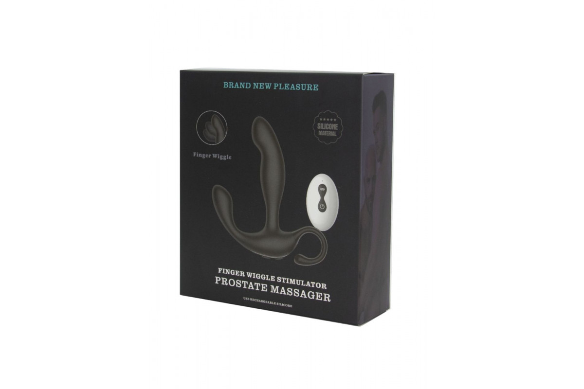 Черный вибромассажер простаты с эффектом фингеринга и пультом ДУ