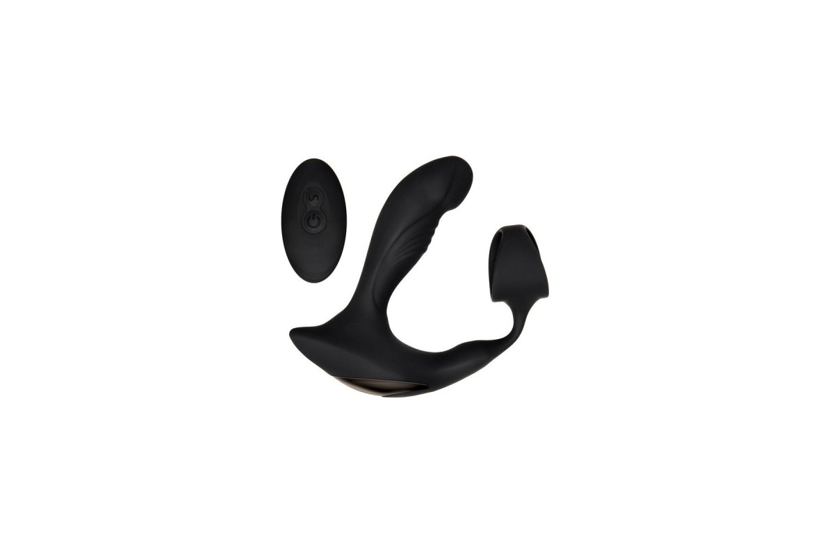 Черный вибромассажер простаты с эрекционным кольцом Strapped & Tapped