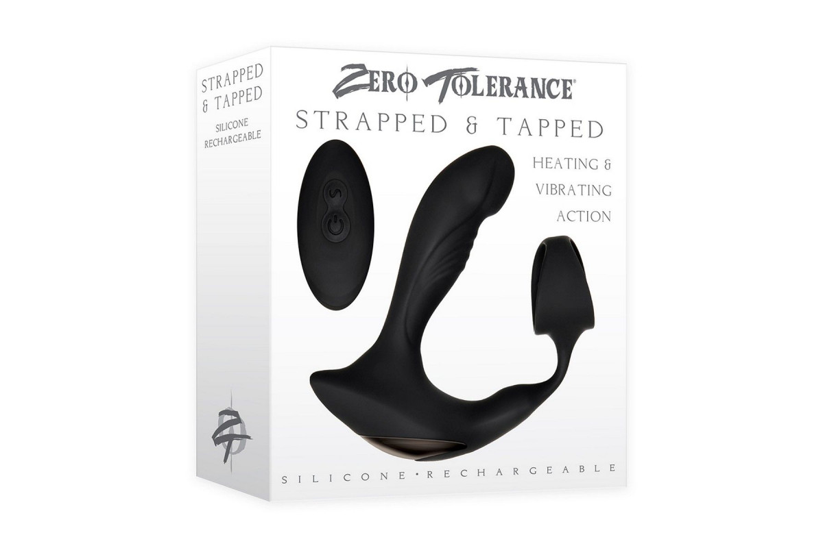 Черный вибромассажер простаты с эрекционным кольцом Strapped & Tapped — новый уровень удовольствия