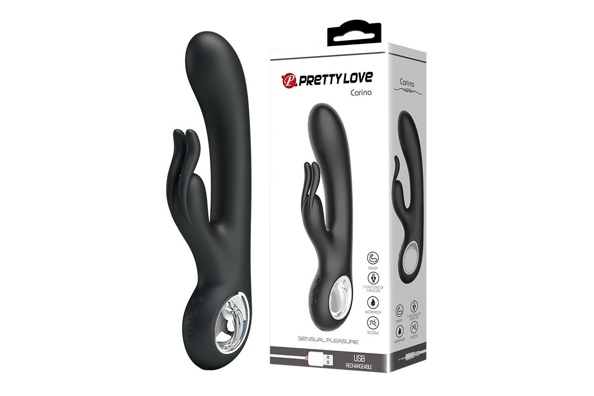 Чёрный вибромассажер с клиторальным отростком Carina — незабываемый опыт удовольствия