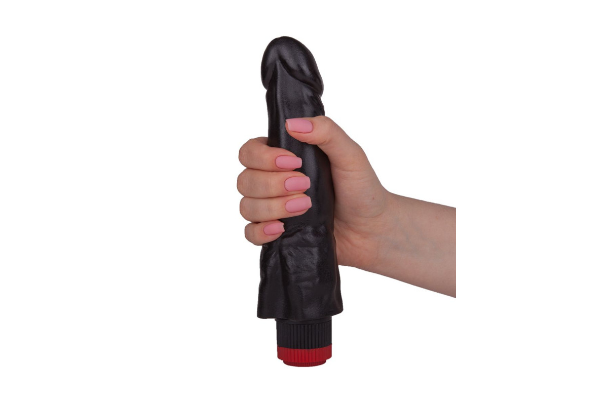 Чёрный вибромассажер с широким основанием — идеальный выбор для интимных удовольствий