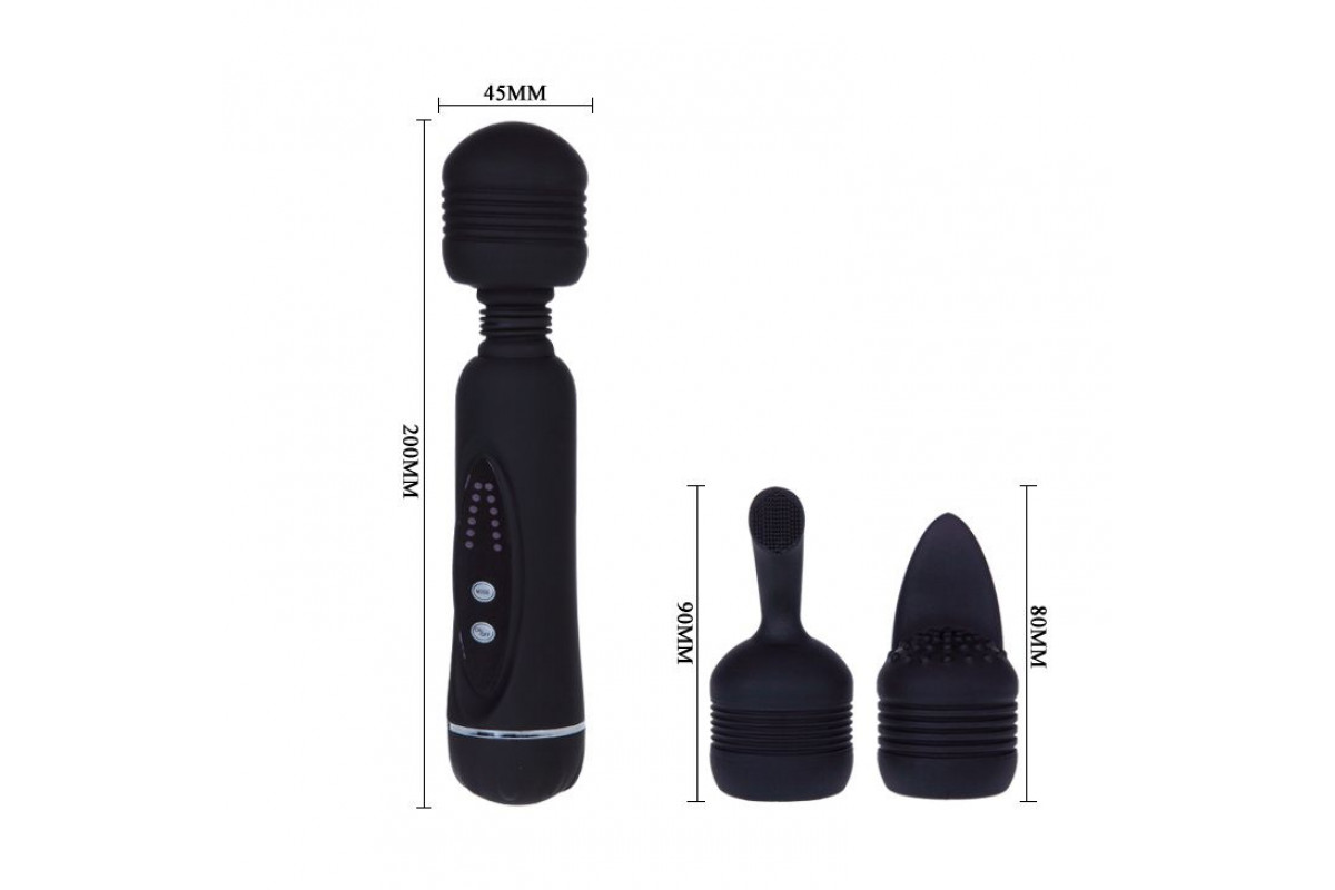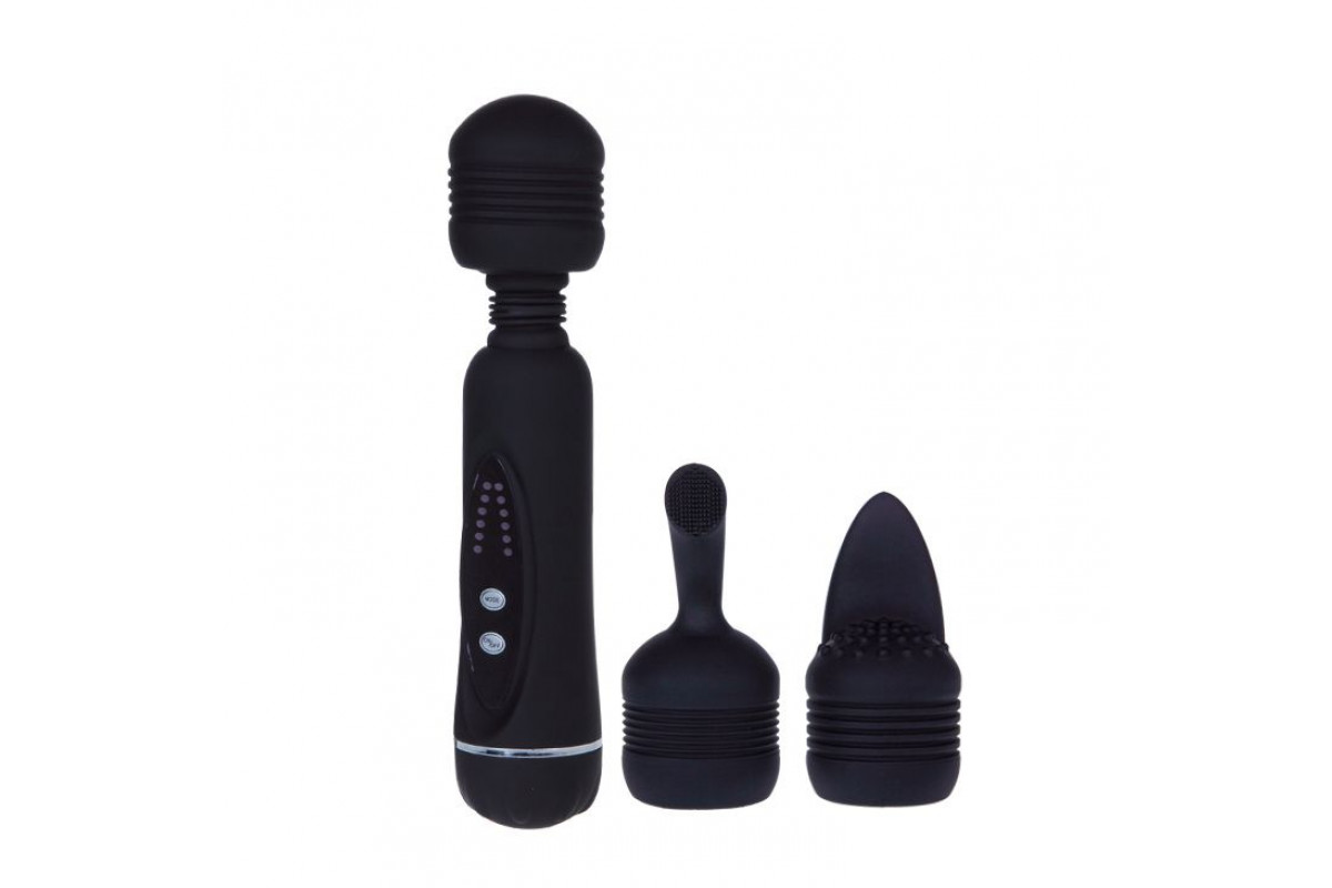 Черный вибромассажер со сменными насадками Power Wand — идеальный выбор для наслаждения