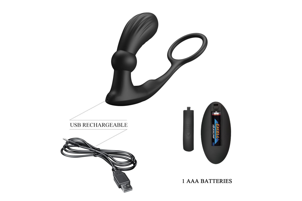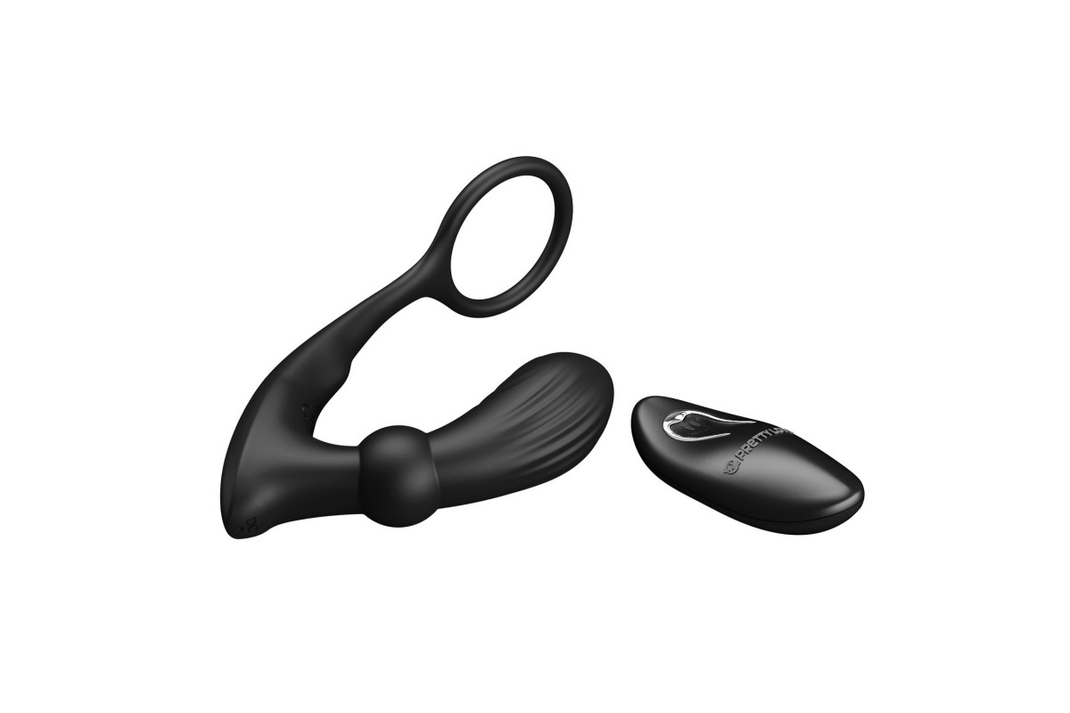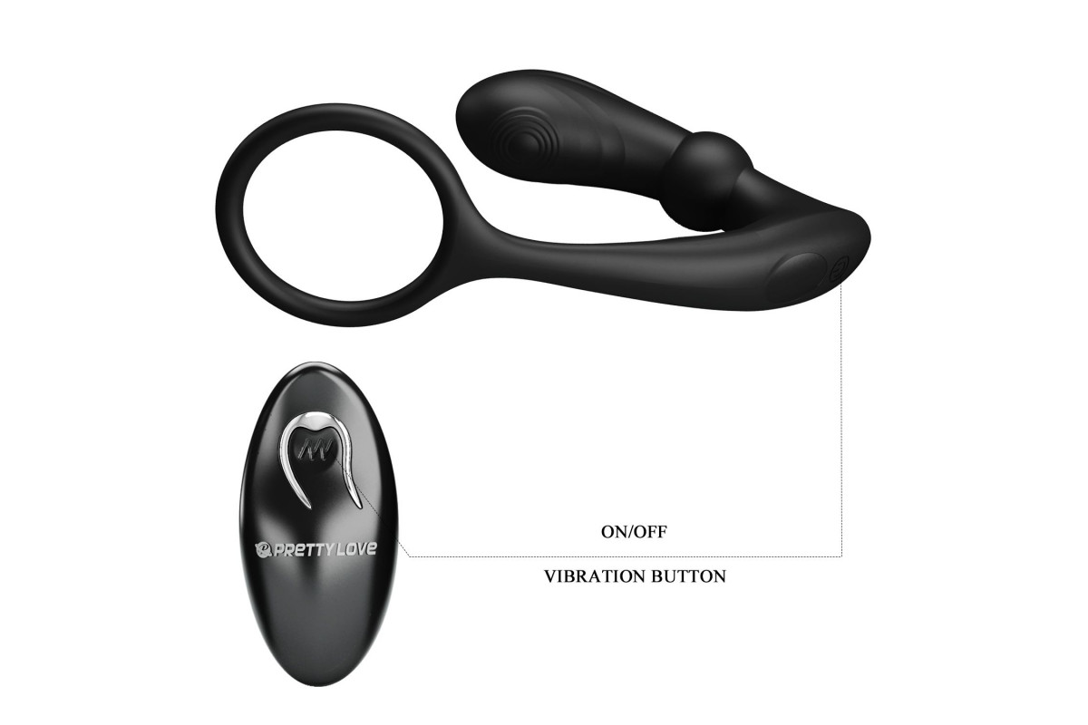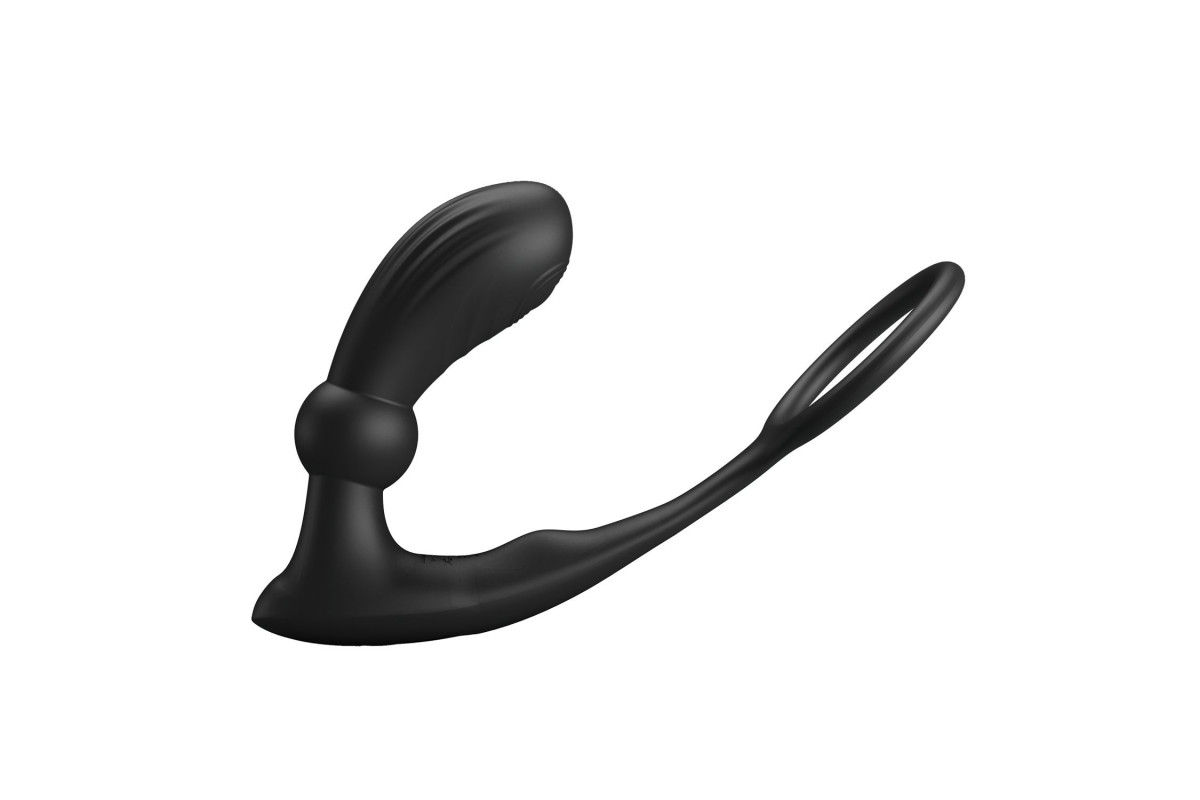 Черный вибростимулятор простаты Warren с эрекционным кольцом