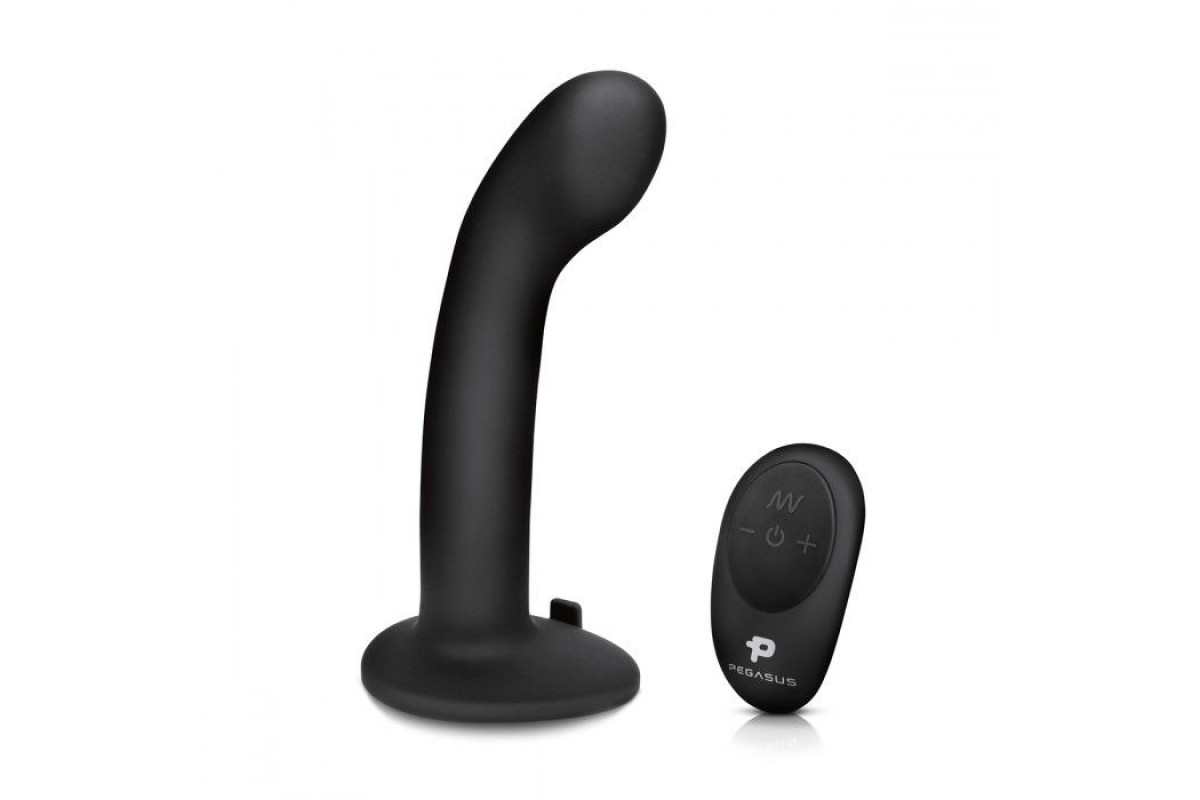Черный вибрострапон с загнутой головкой Pegasus с пультом ДУ – 15 см